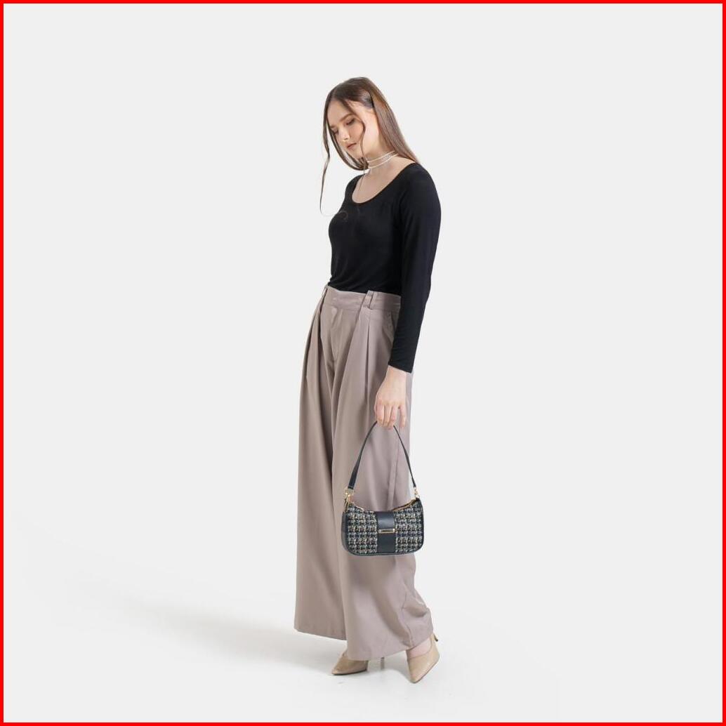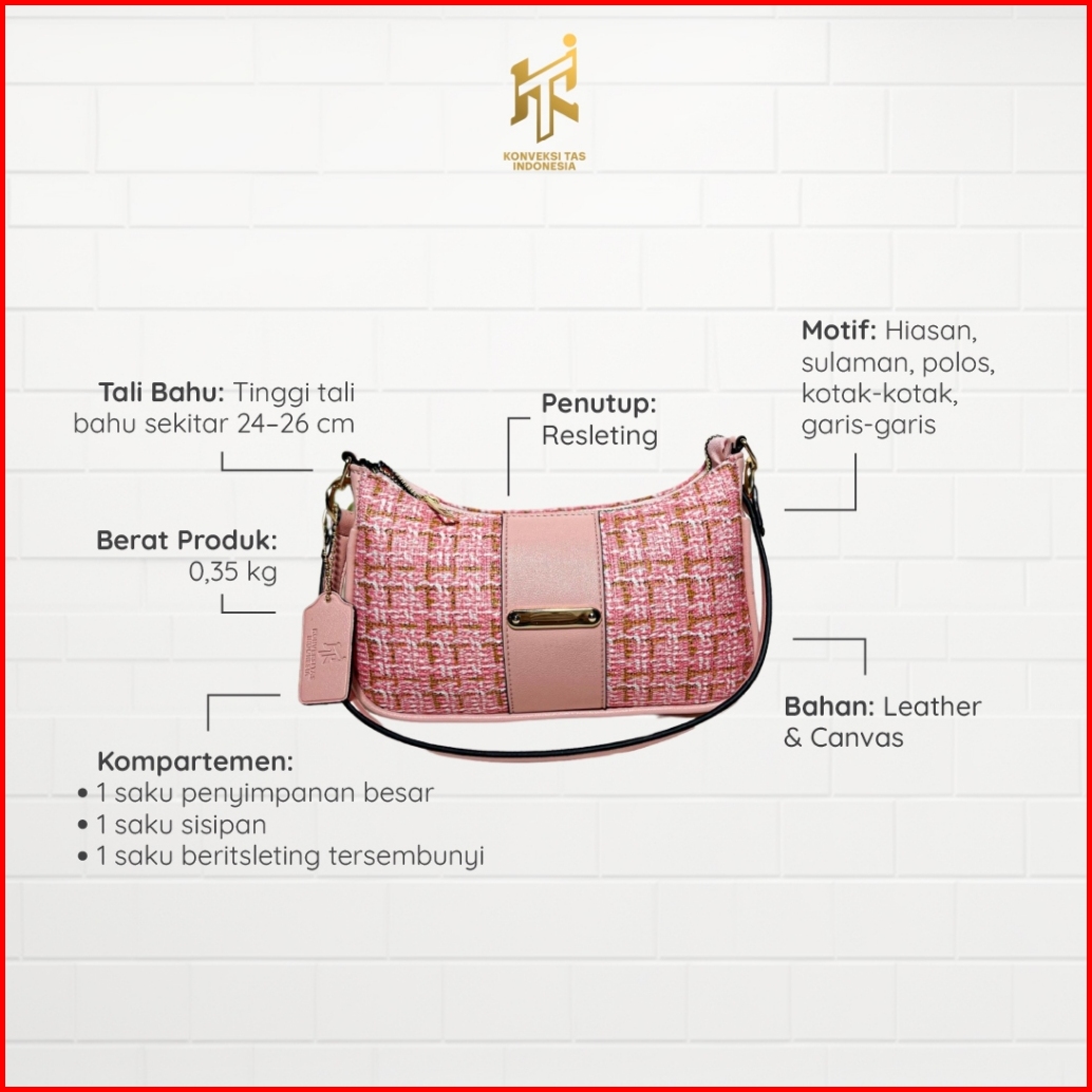 Kti Tas Lunette Hobo Kombinasi Canvas Leather Tekstur Pola Klasik Ringan