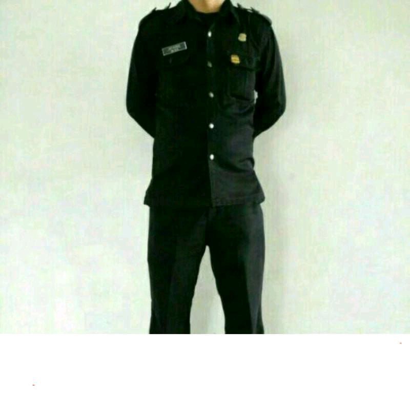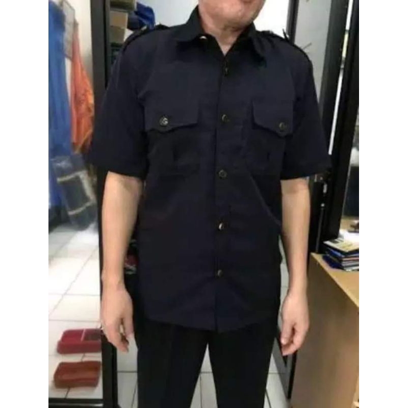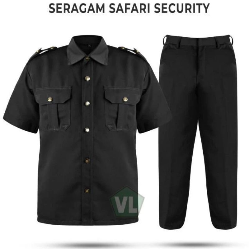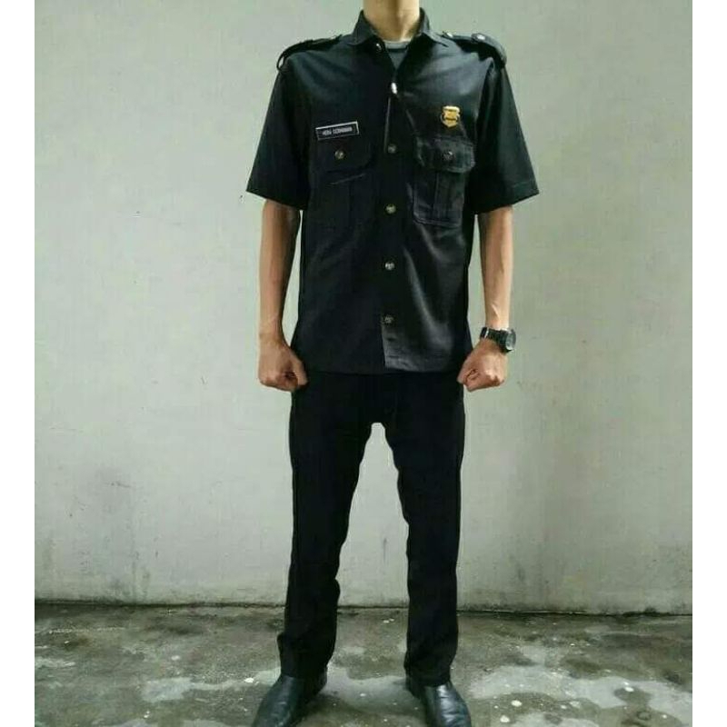 Stelan Seragam Safari Hitam Pekat Satpam Lengan Pendek | Baju Dinas Security / Satpam