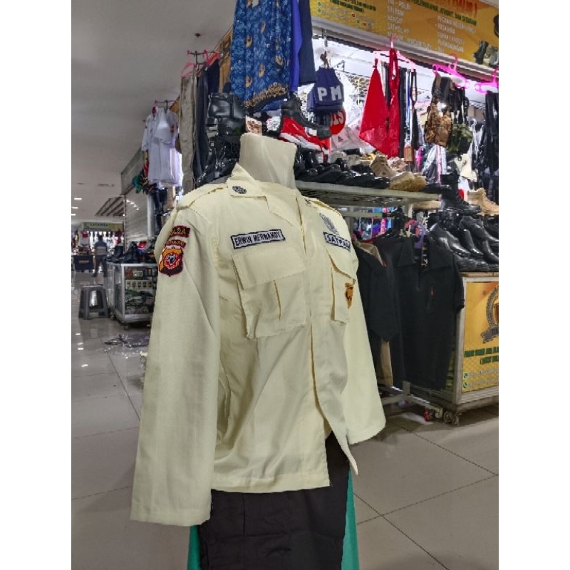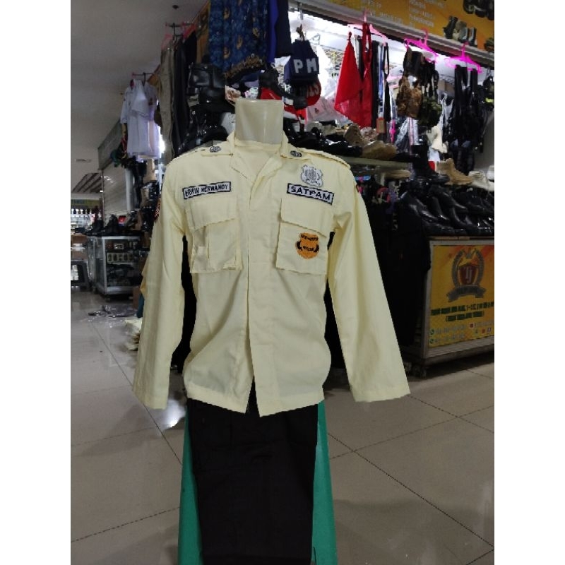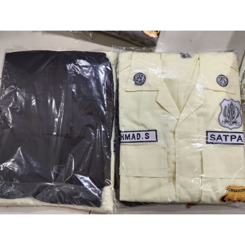 seragam pdl satpam krem terbaru 2024/seragam pdl bahan drill/seragam pdl +bordiran lengkap/baju aja pdl +bordiran lengkap