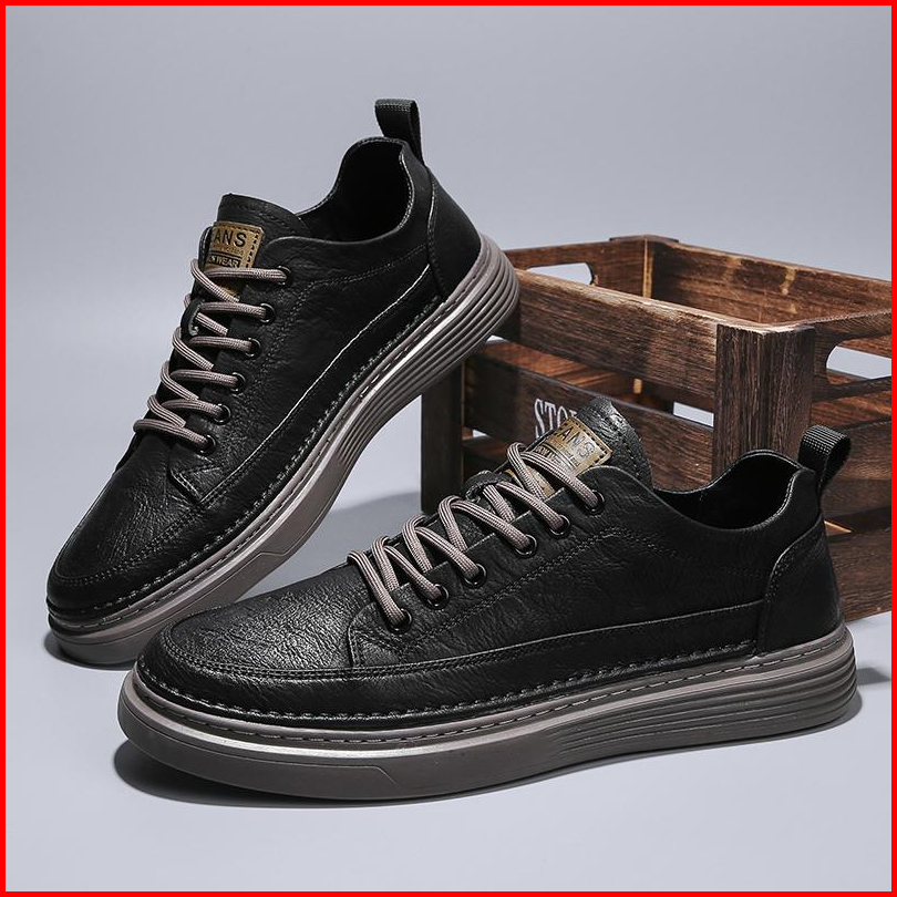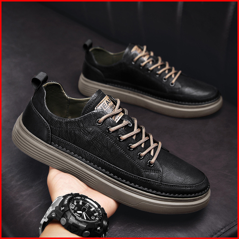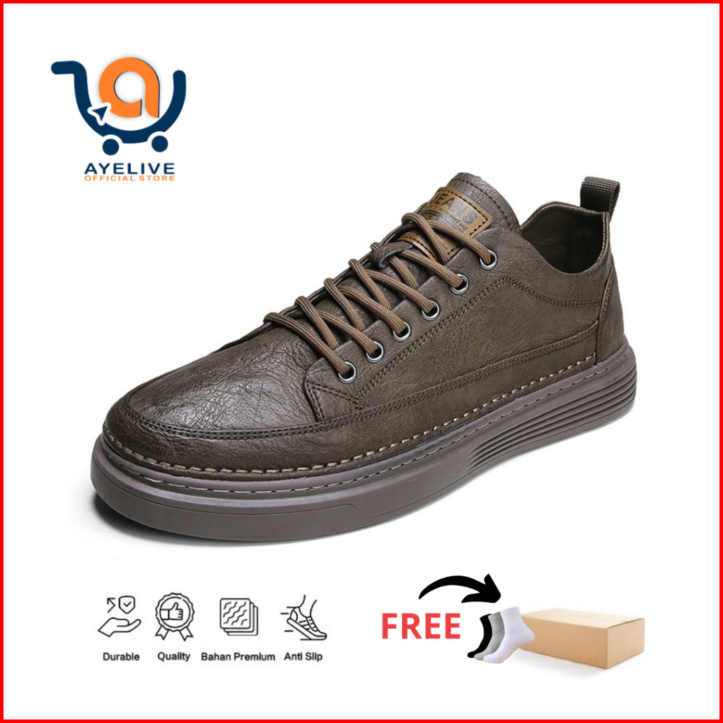 Sepatu Sneakers Pria Casual Import Premium Sepatu Kulit Flexible Terbaru Best Quality Brwner Shoe