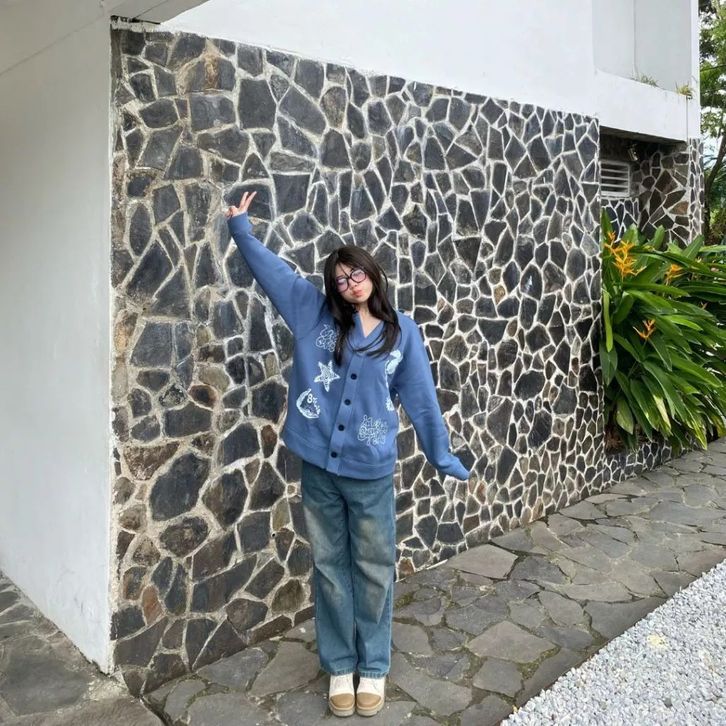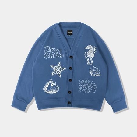 Cardigan Sea Fauna Black & Steel Blue Cardigan Oversize Outer Lengan Panjang KCCG002 Cardigan Premium