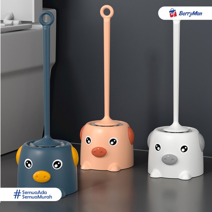 Sikat Pembersih WC Toilet Kamar Mandi Gagang Panjang Dengan Tatakan Karakter Babi Lucu