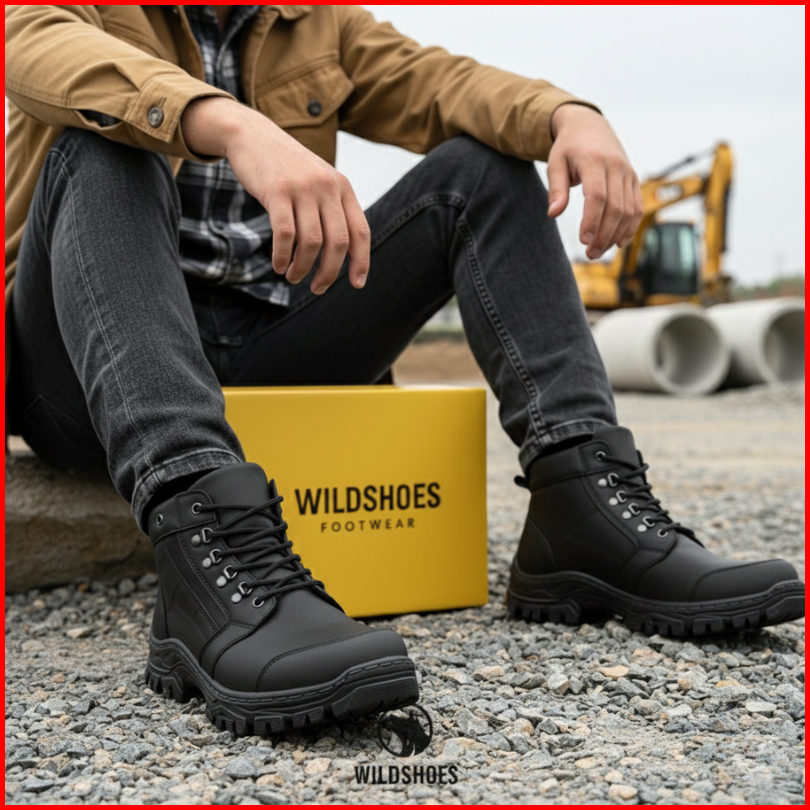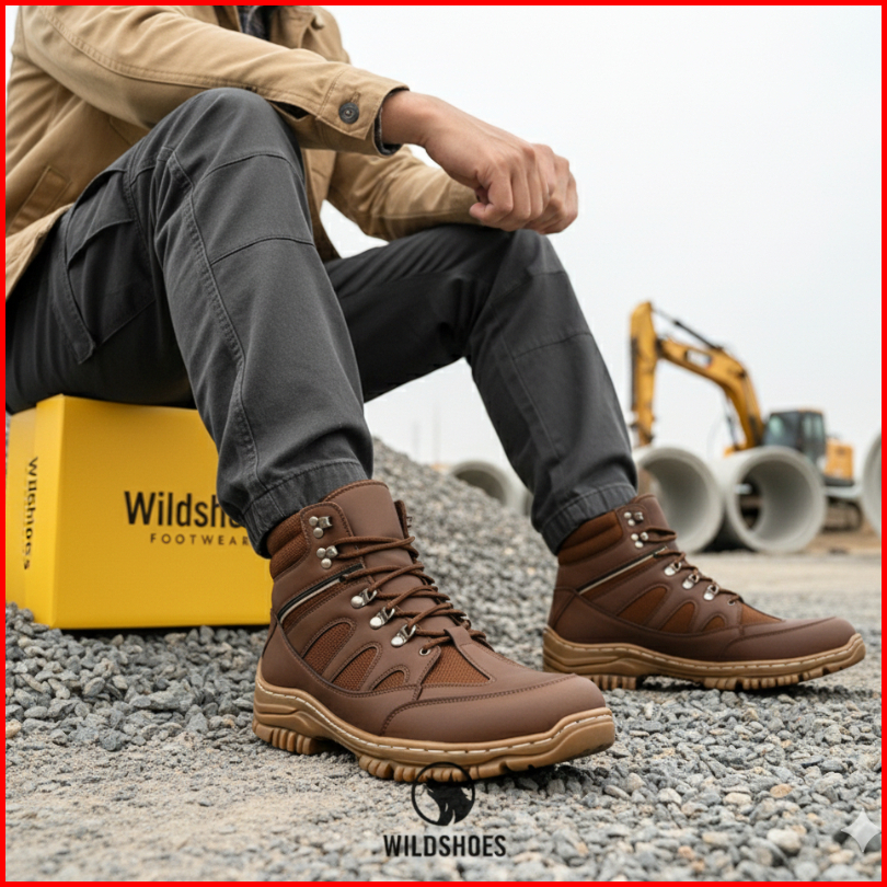 Sepatu Safety Pria Boots - Shoes Safety Ujung Besi - Sepatu Pria Boot Outdoor Tracking Adventure - Wildshoes