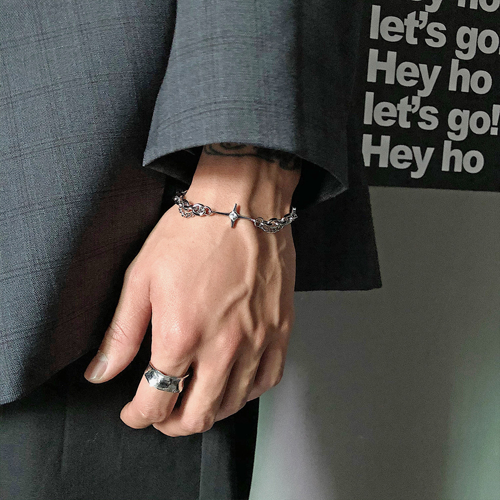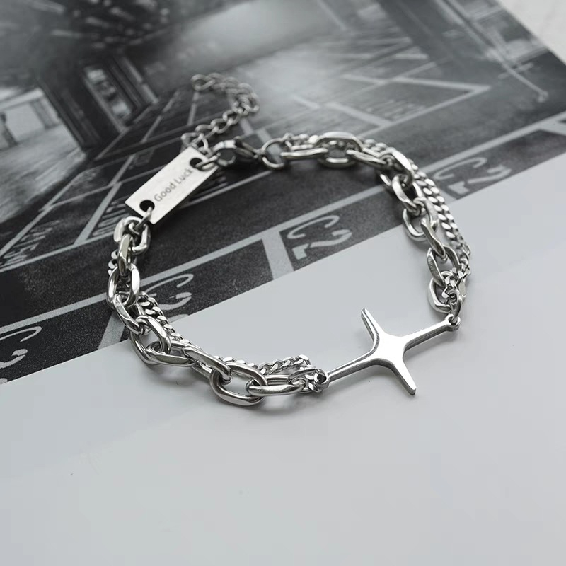 Gelang Rantai Double Layer Silver Aesthetic Punk Retro