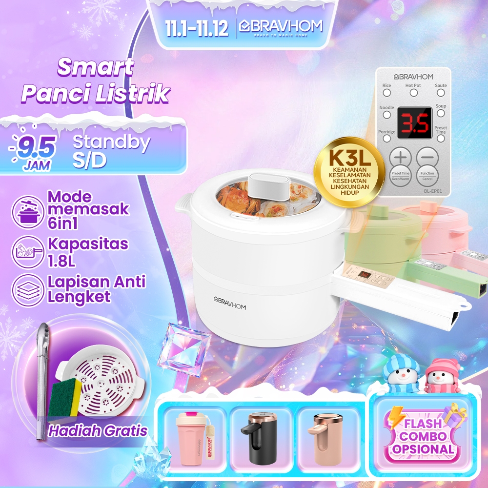 BRAVHOM Panci Listrik Serba Guna Kukusan 1.8L 6in1 Anti Lengket Perlindungan Terlalu Panas BL-EP01 Murah Terjangkau