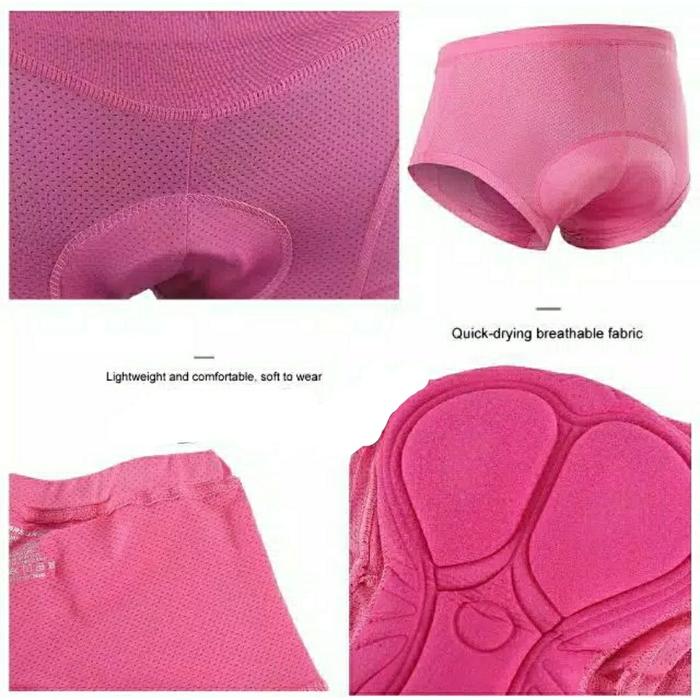 Celana Dalam Sepeda Gowes Wanita Women Padding Sponge Gel 3D Pink Soft - Merah Muda, S