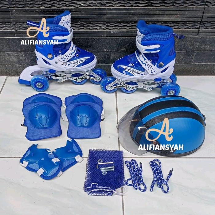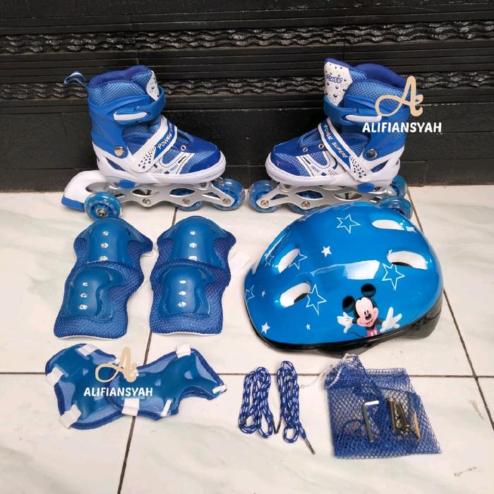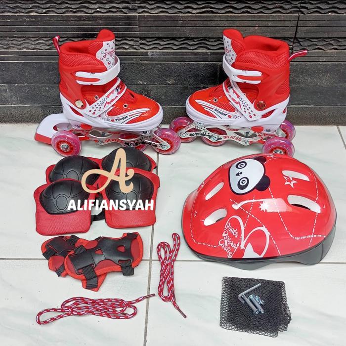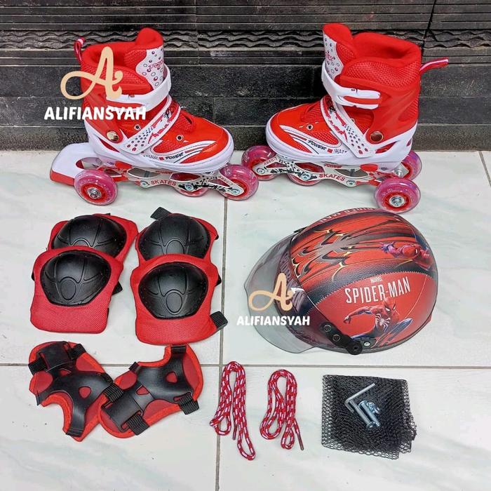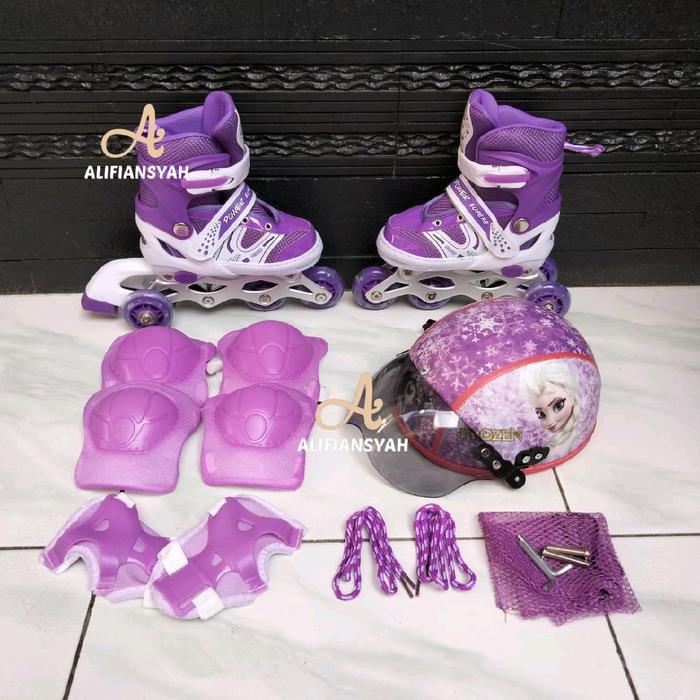 Sepatu Roda Anak Fullset Model Bajaj Set Helm Dan Pelindung Lutut Sikut Telapak Tangan Outdoor Kaki - Pink Fulset Lol,