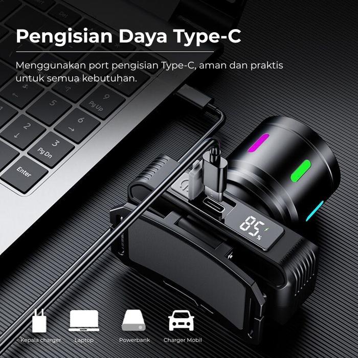 H2S Senter Kepala Cas 2 Cahaya Hs-2Light Zoom Out Waterproof Baterai 21700 - Senter Kepala Cas 2 Cahaya Hs-2Light