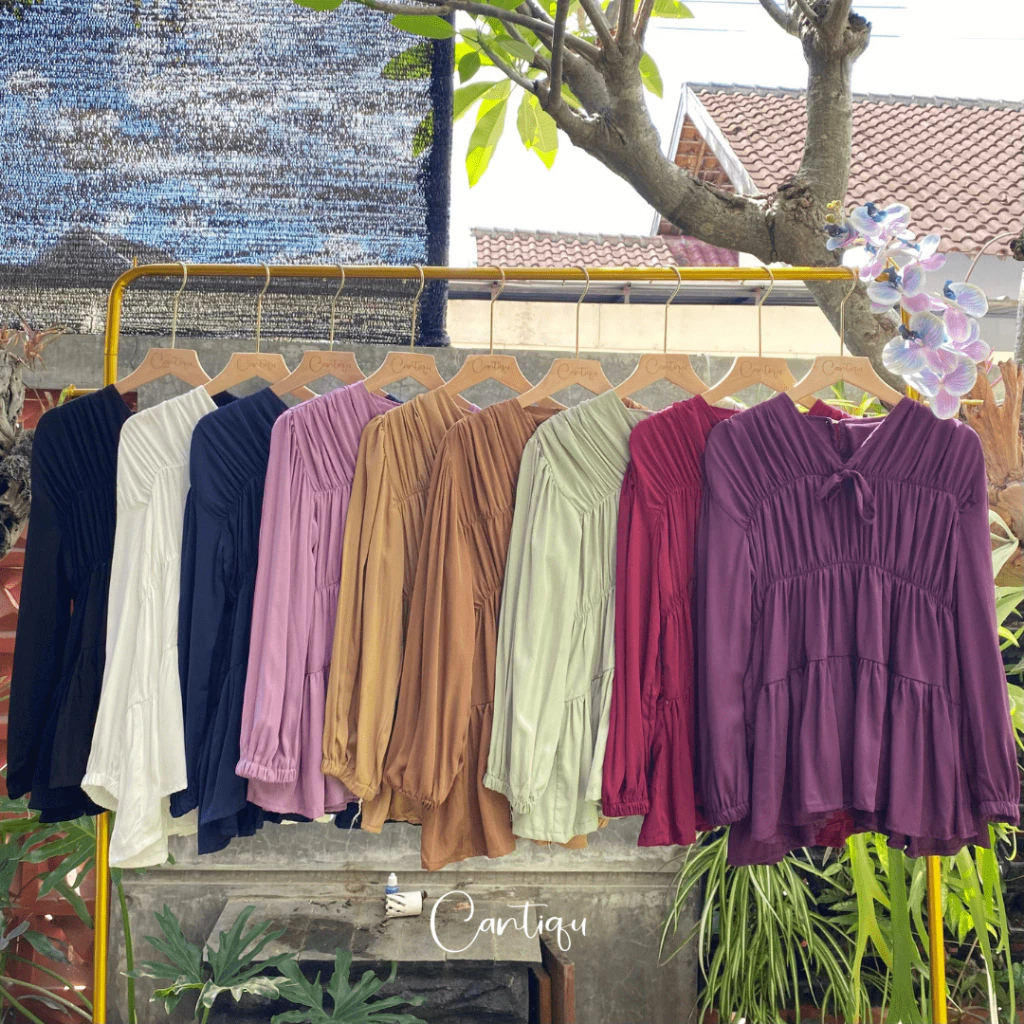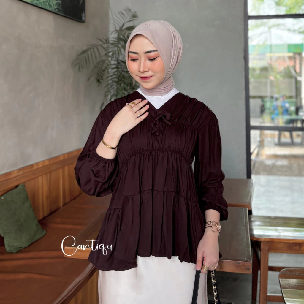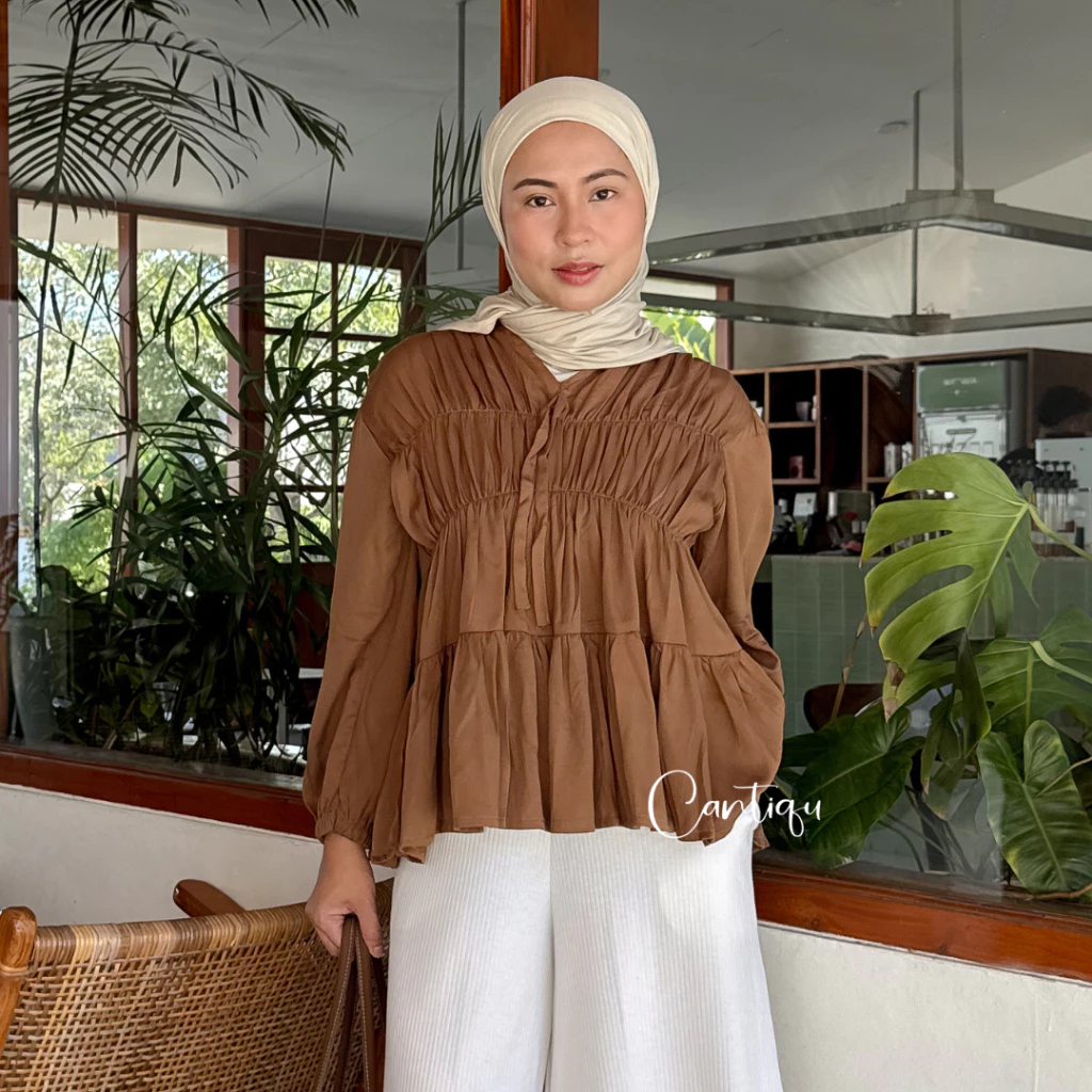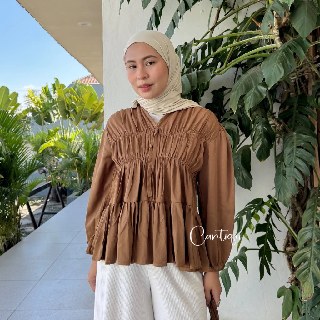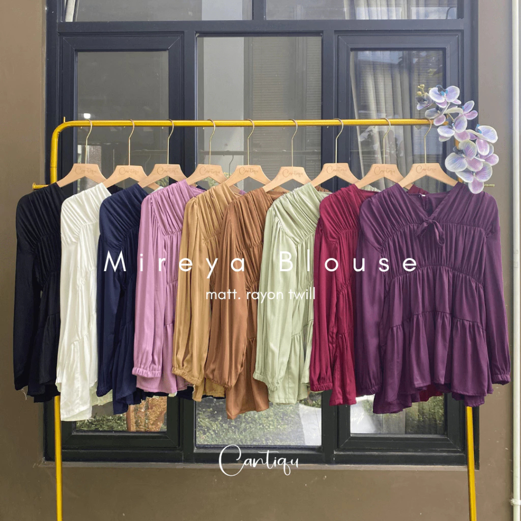 Atasan Wanita Kekinian Mireya Kerut Rayon Series Premium Blouse Korean Style Lengan Panjang Motif Polos Best Seller