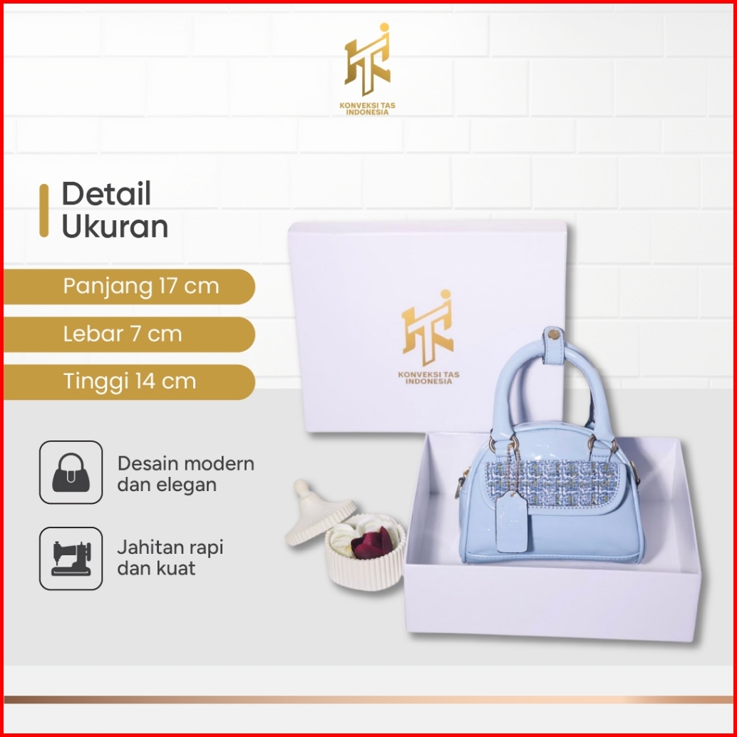 Kti Tas Tweed Kulit Pu Verona Model Selempang Bold Chic Ringan Adjustable