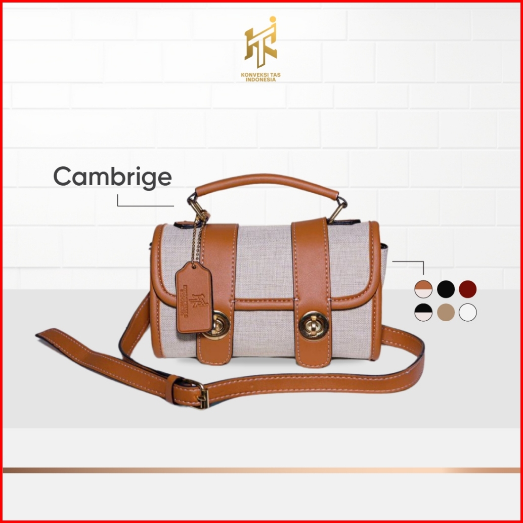 Kti Tas Wanita Cambrige Bahan Kulit Pu Tali Adjustable Penutup Turn Lock