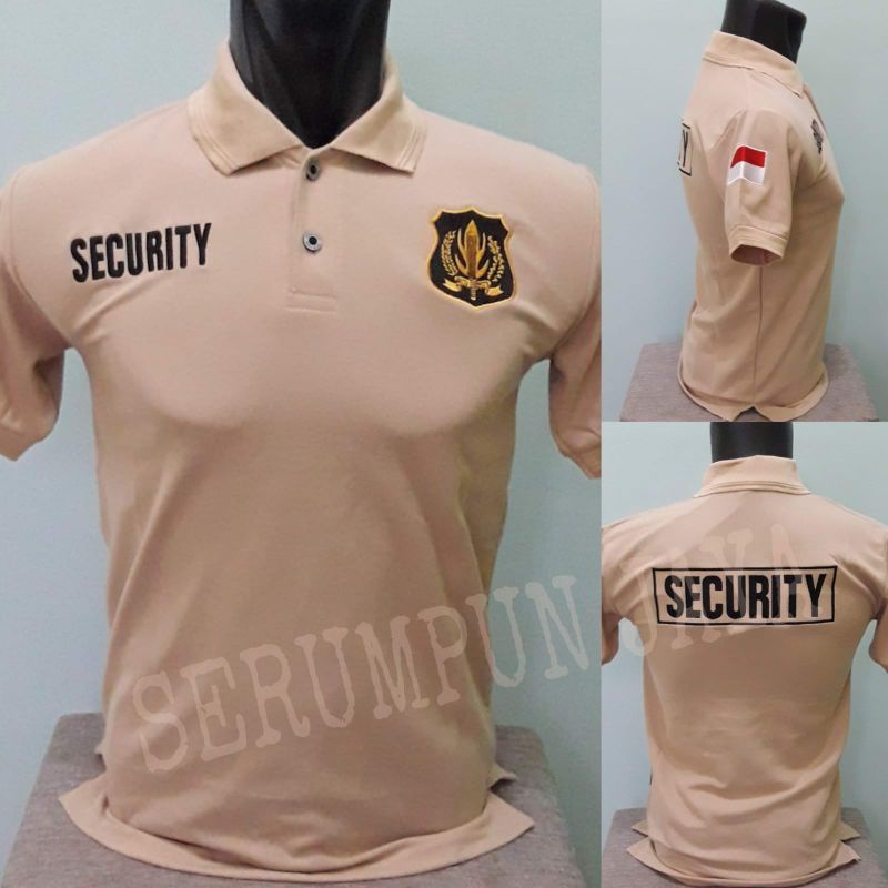 KAOS SECURITY KREM - KAOS KERAH SECURITY KREM LOGO KUNING - KAOS SECURITY FULL BORDIR.