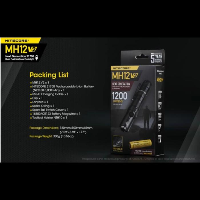 Nitecore Mh12 V2 Senter Led Cree Xp-L2 V6 1200 Lumens