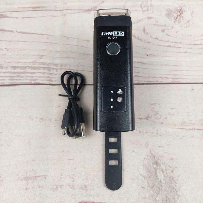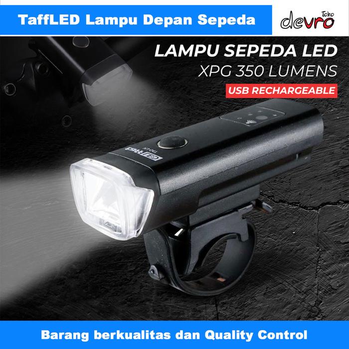 Lampu Depan Sepeda Led Usb Rechargeable Xpg 350 Lumens - Lampu Sepeda Bike Light - Taffled Hj-047 - Full Black