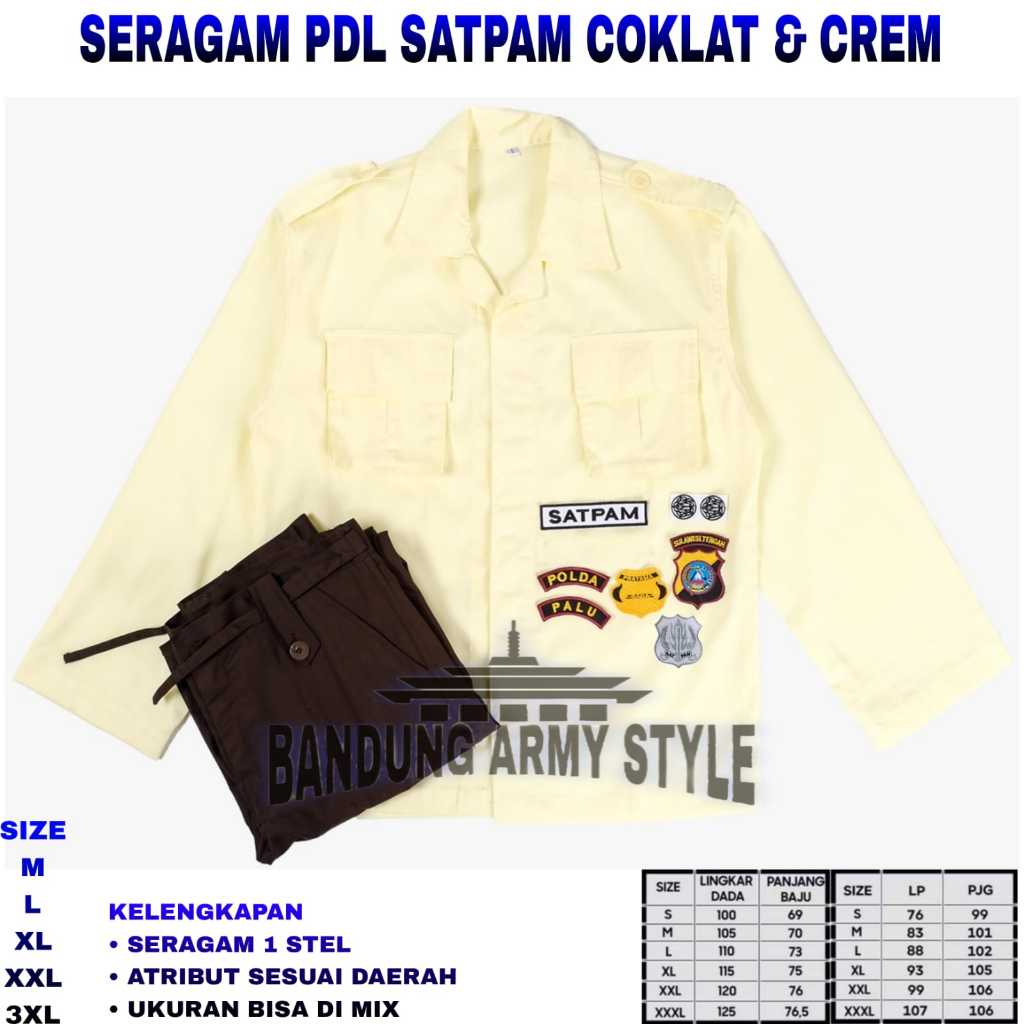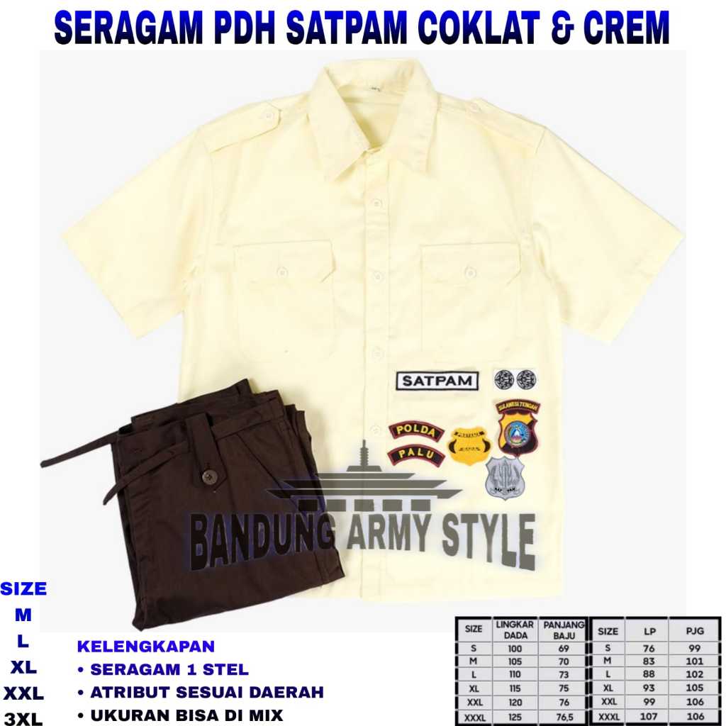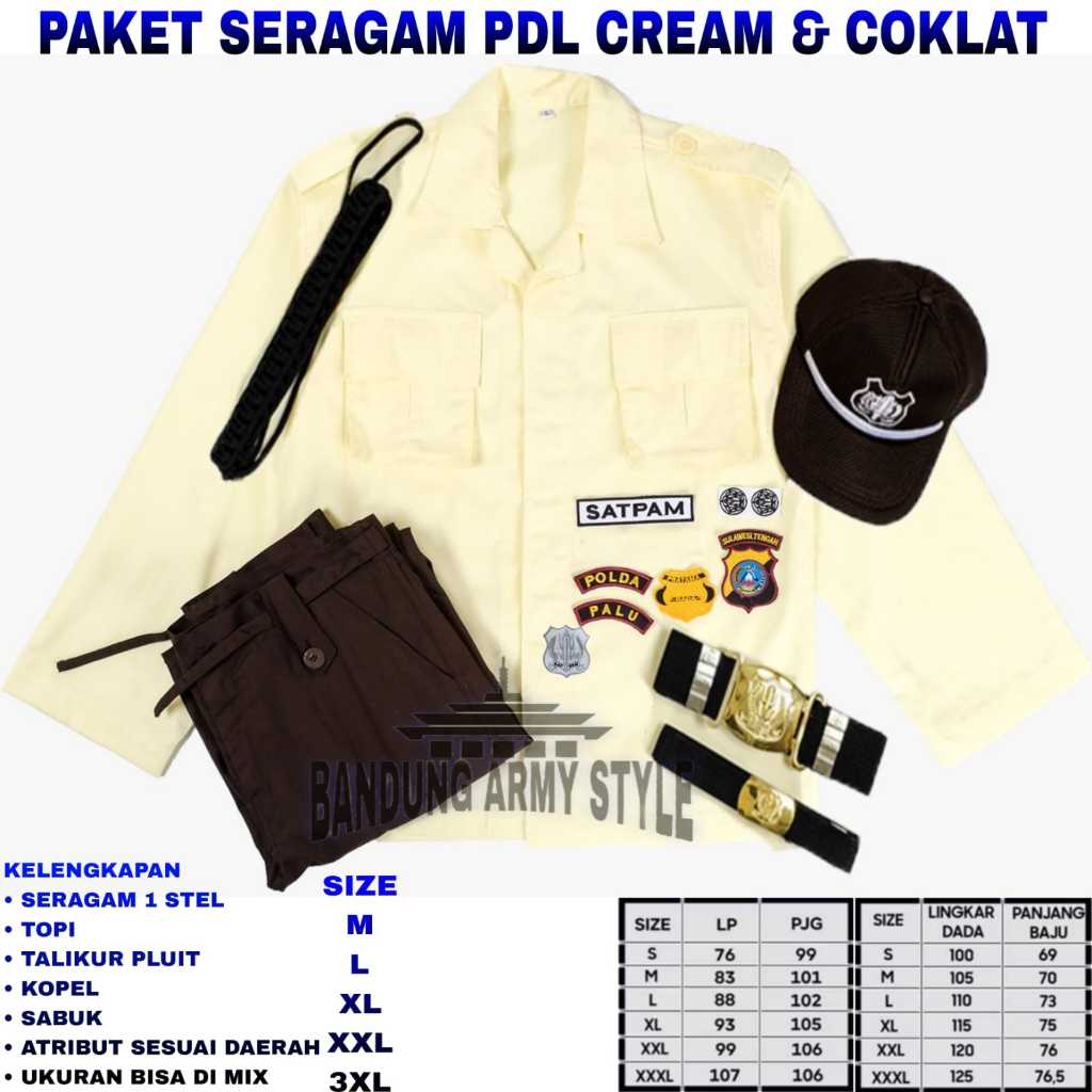PAKET LENGKAP BAJU SERAGAM SETELAN PDL PDH SATPAM SECURITY KREM CREAM TERBARU 2025 SERAGAM SATPAM
