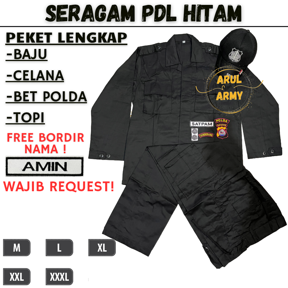 BAJU SERAGAM PDL SATPAM SECURITY HITAM PAKET LENGKAP SETELAN PDL HITAM SATPAM KEAMANAN BRIMOB HITAM