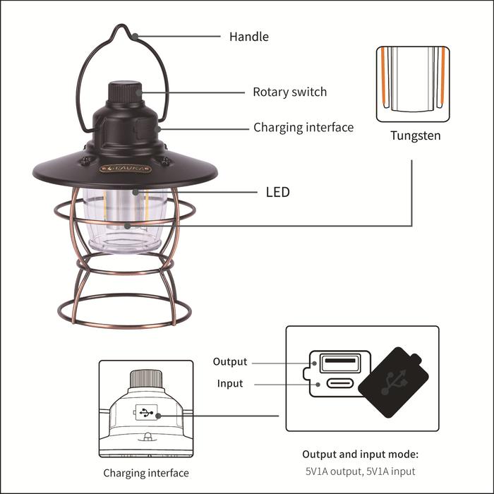 Alltrek Lampu Outdoor Aspire Vintage Style Camping Usb Light 2 Mode