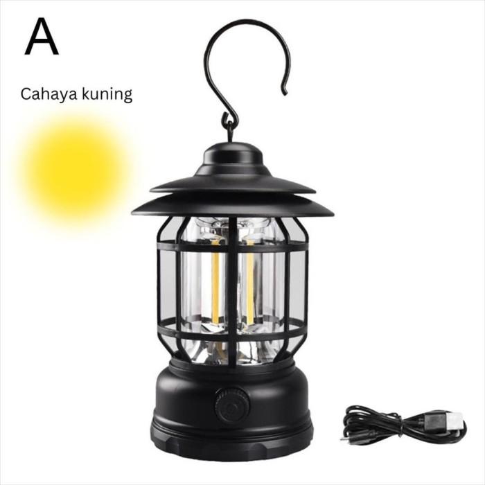 Lampu Camping Lentera Retro Model Gantung Rechargeable Cahaya Kuning - Merah