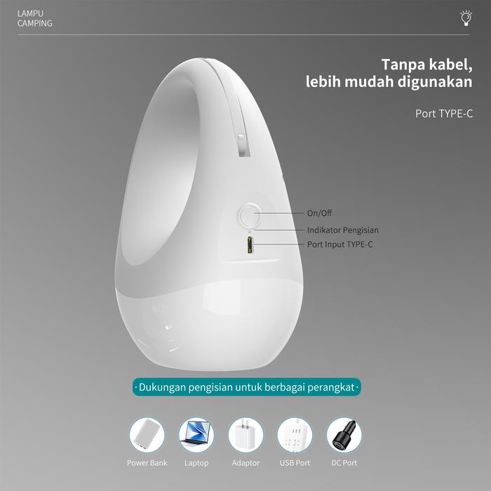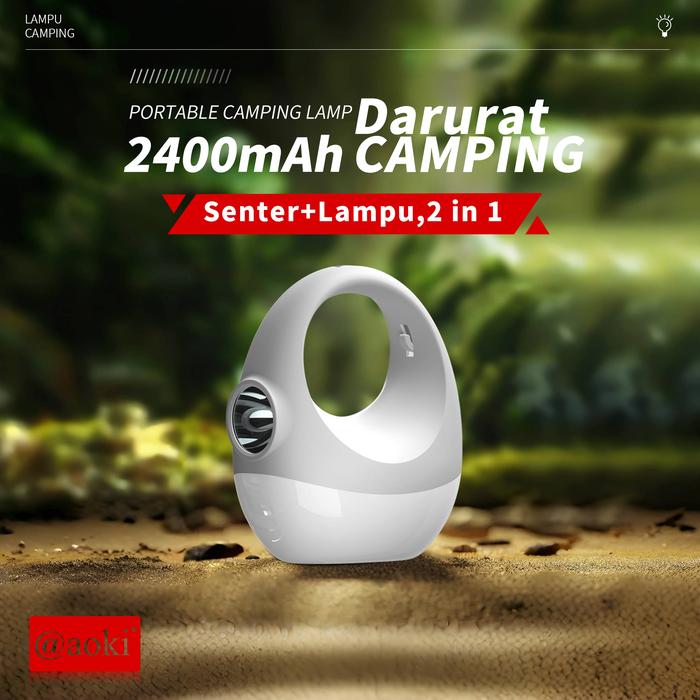 Aoki Lampu Camping Praktis 2400Mah Daya Tahan Lama Dual Baterai Senter Dimmer Dapat Digantung - 2400Mah