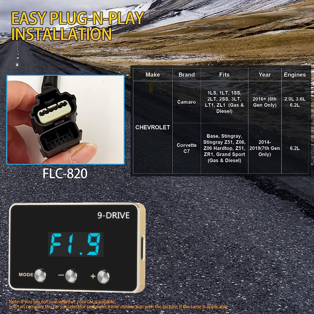 9 DRIVE CHEVROLET THROTTLE CONTROLLER PIGGYBACK CHEVROLET AVEO SPIN Camaro (6th Gen) Fits: 1LS,1LT,1SS,2LT,2SS,3LT,LT1,Z