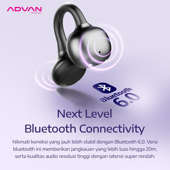 [Official Store ✔️] ADVAN Eclipse+ Plus Open-Ear Clip Bluetooth 6.0 Low Latency Smart Touch Control Up To 9 Hours