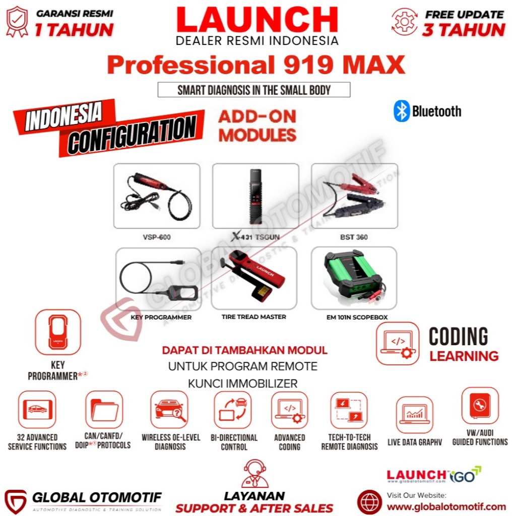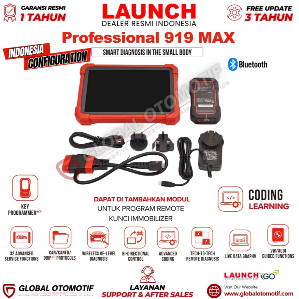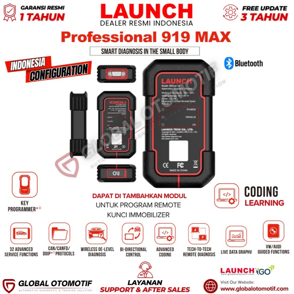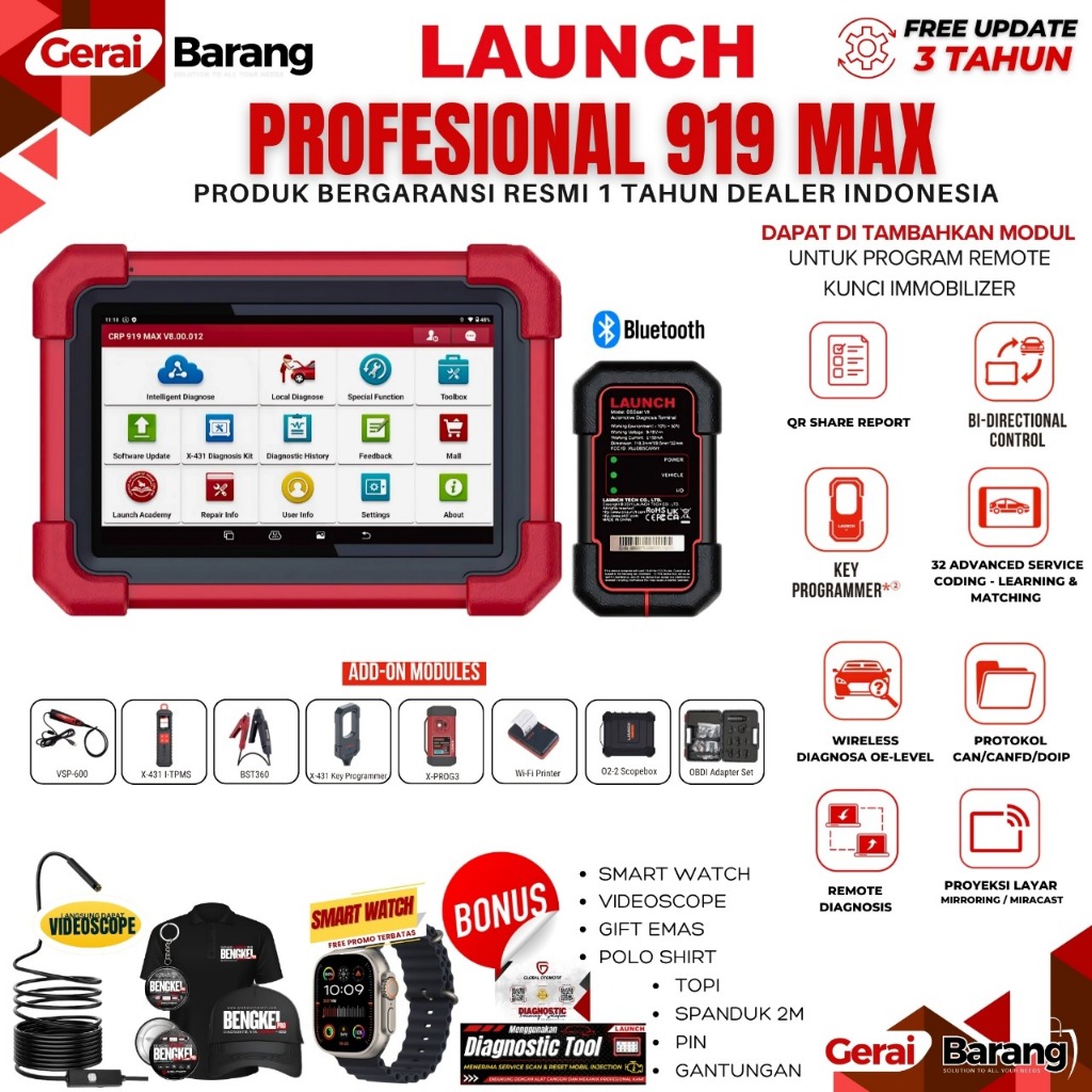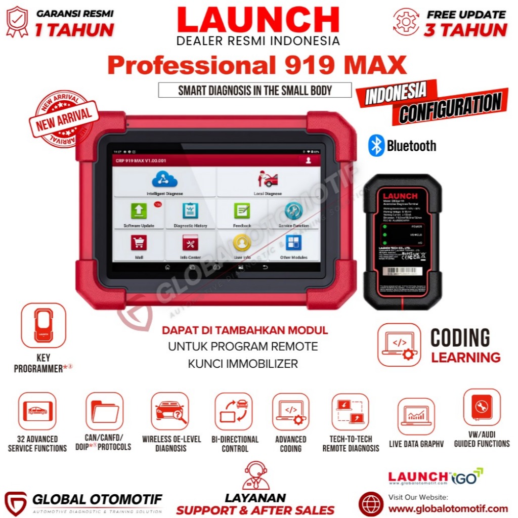 Scanner Mobil Launch Professional 919 MAX Scanner Diagnostik Canggih Untuk Profesional Otomotif,Dealer RESMI Indonesia