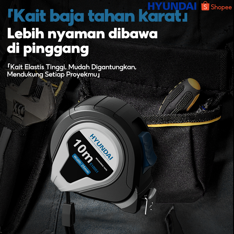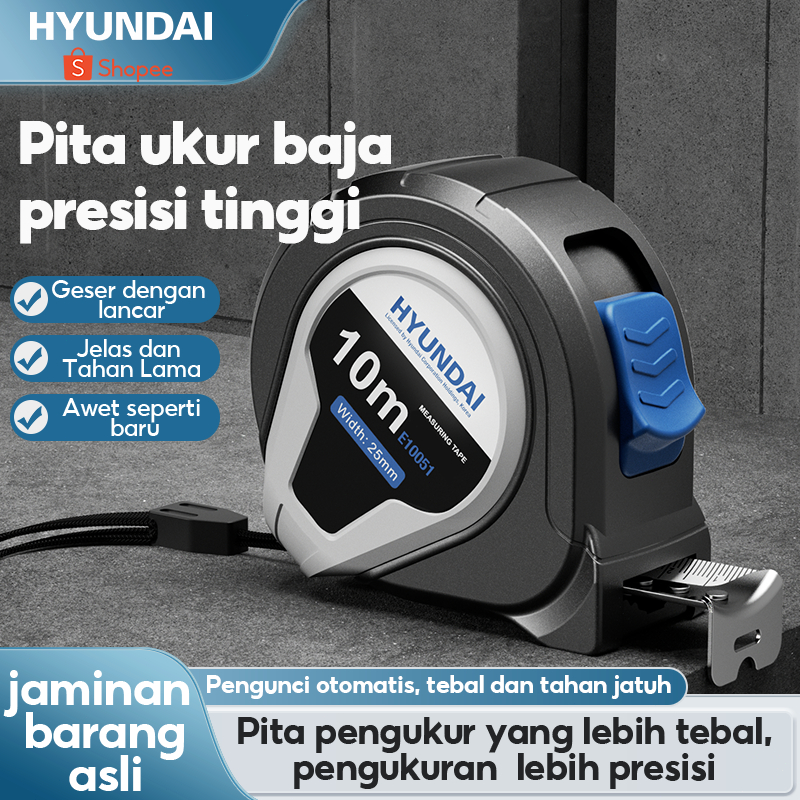 HYUNDAI Meteran Tukang 10 5 3 Meter Baja Paling Bagu Pita Pengukur Tape Measure Bahan Karet ABS