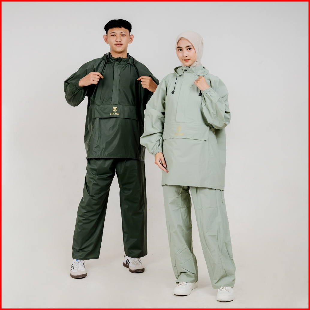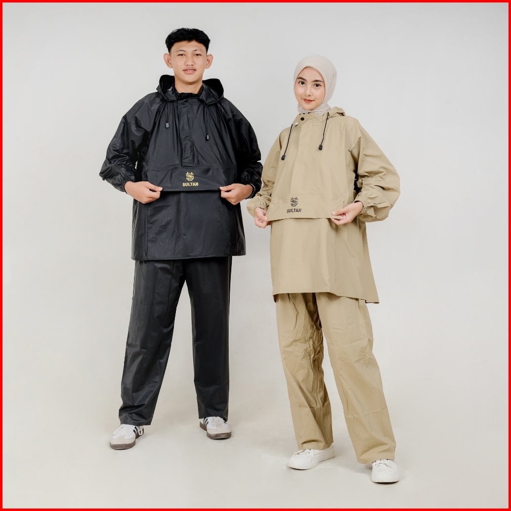 Sultan Jas Hujan Kanguru Pria Wanita Setelan Baju Celana Dewasa Cream
