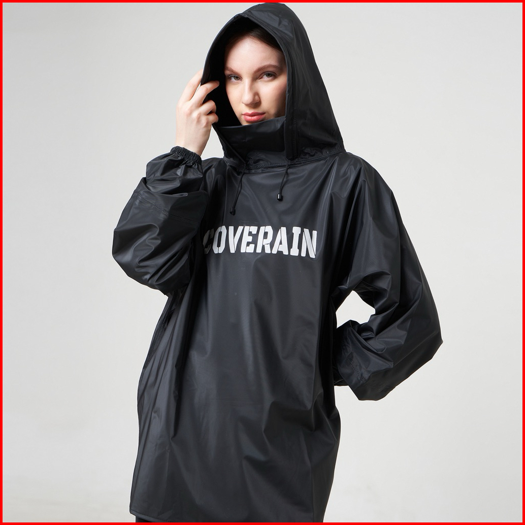 Coverain Jas Hujan Hoodie Full Sealing Press Setelan Pria Wanita Anti Rembes Premium Tanpa Resleting