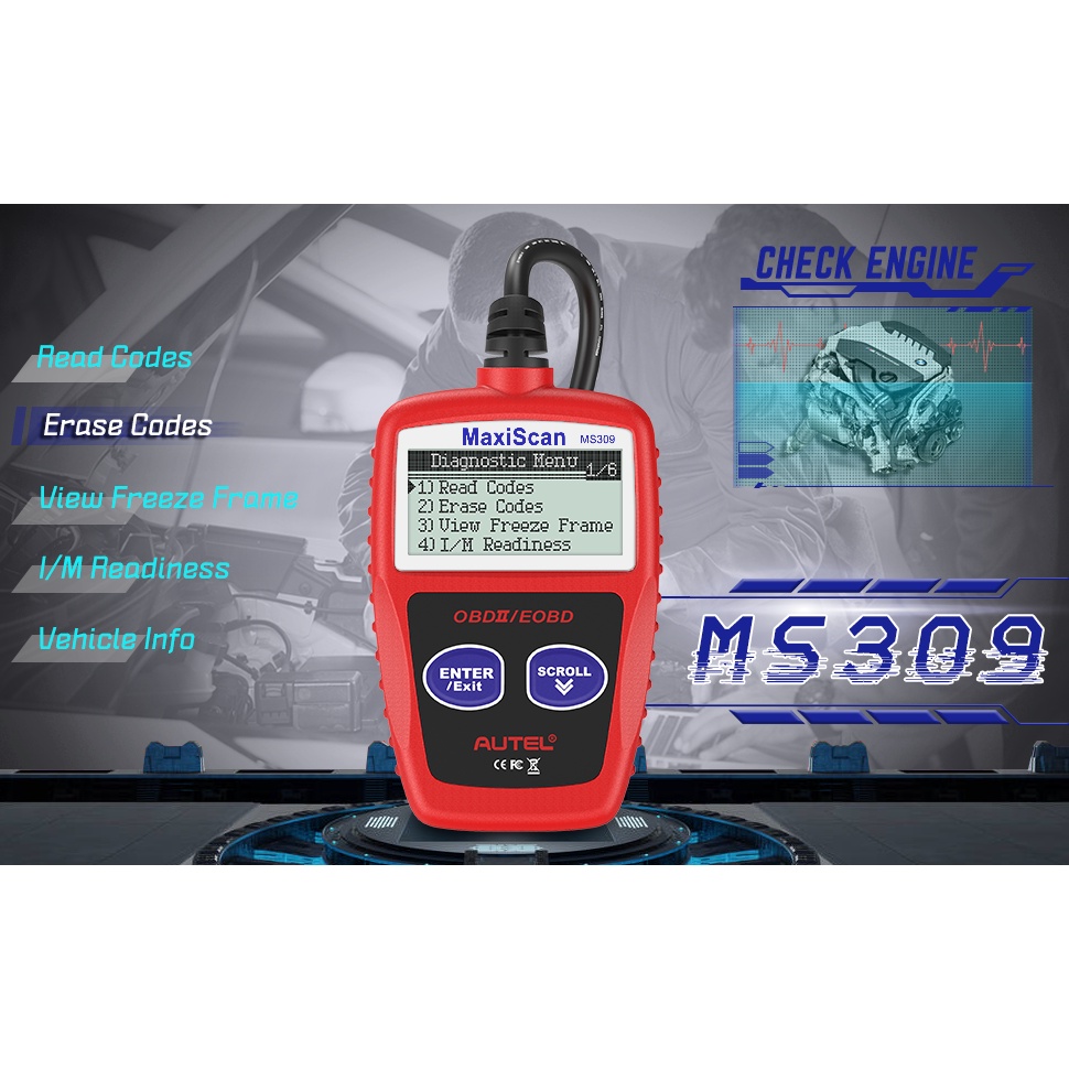 MS309 OBD2 Scanner Pembaca Kode Mesin Mobil Periksa Status Monitor Emisi DAPAT Diagnostik Scan Tool untuk Semua Kendaraa