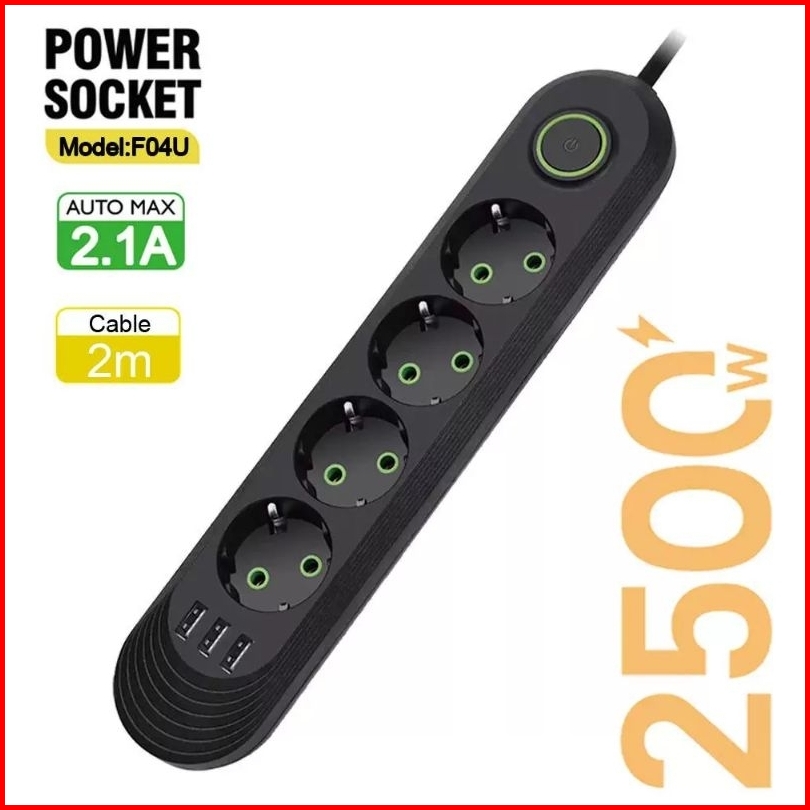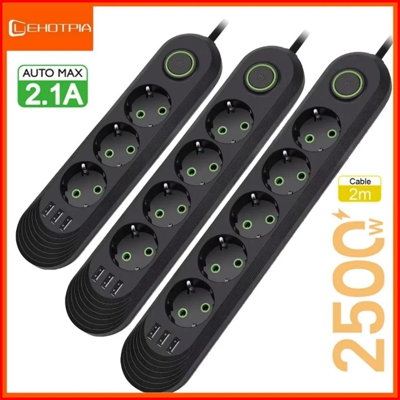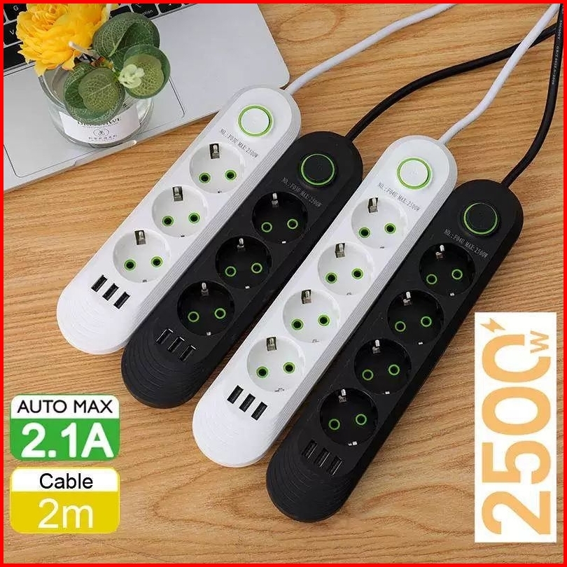 Aebrand Stop Kontak Usb 2500w 2 Meter Power Socket Charger Stop Kontak 3 4 Lubang 3 Usb Soket Listrik - Terminal Colokan