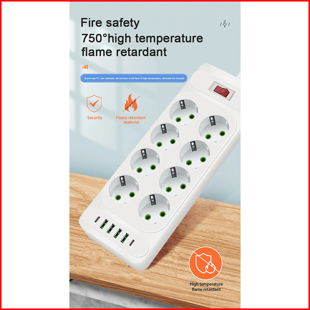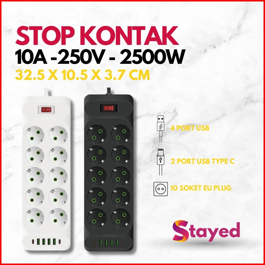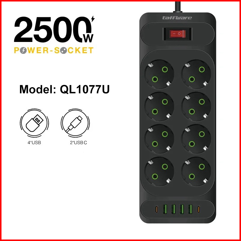 Taffware Terminal Listrik Stop Kontak Usb Type C Eu Plug 10a 110-250v 2500w 8 10 Lubang Colokan - Ql-1077u Ql-1078u