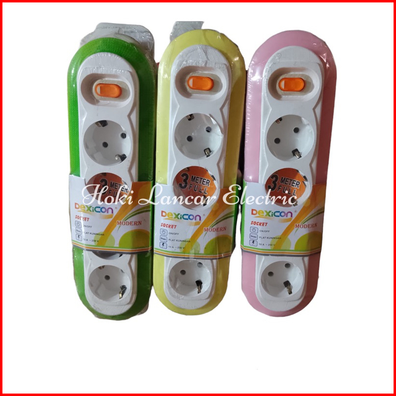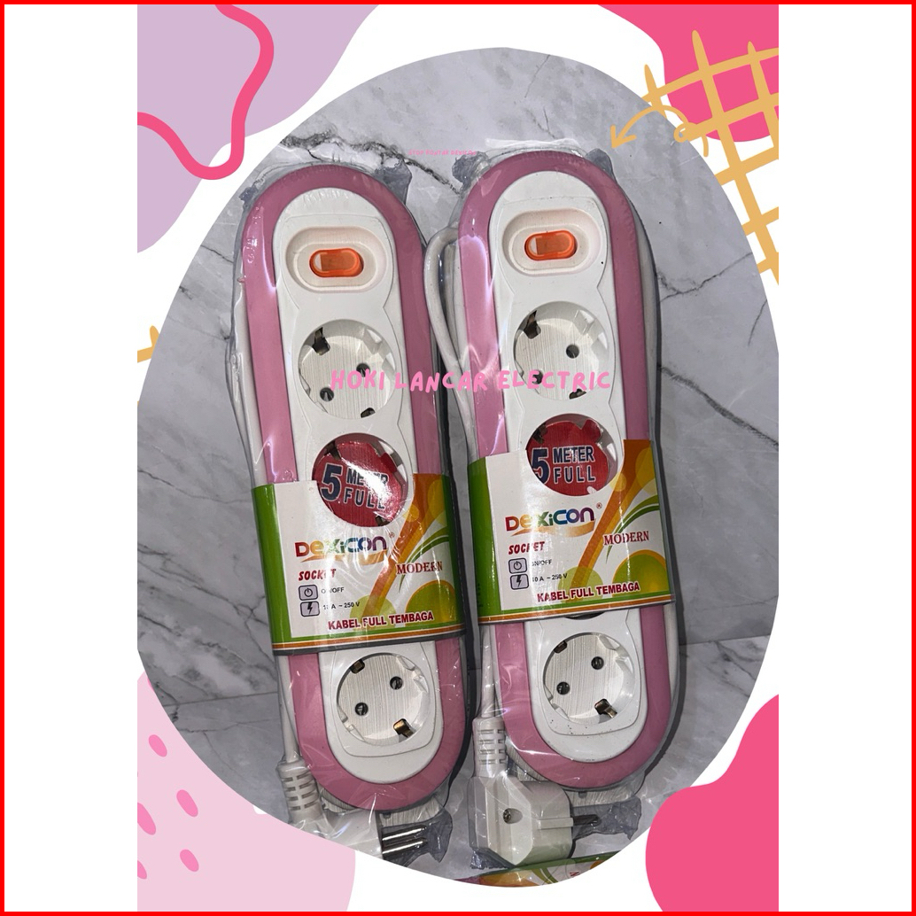 Pink - Dexicon Stop Kontak 3lubang 4lubang Kabel 3meter 5 Meter Dexicon Switch On Off Warna Pink Merah Muda