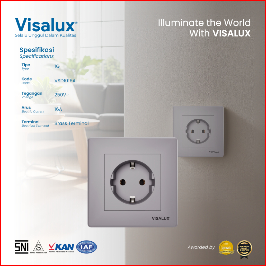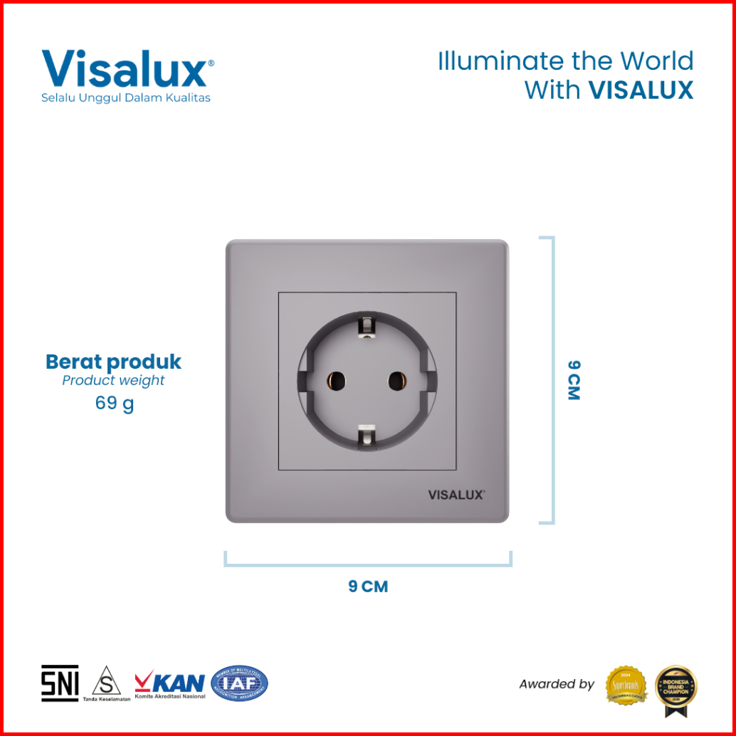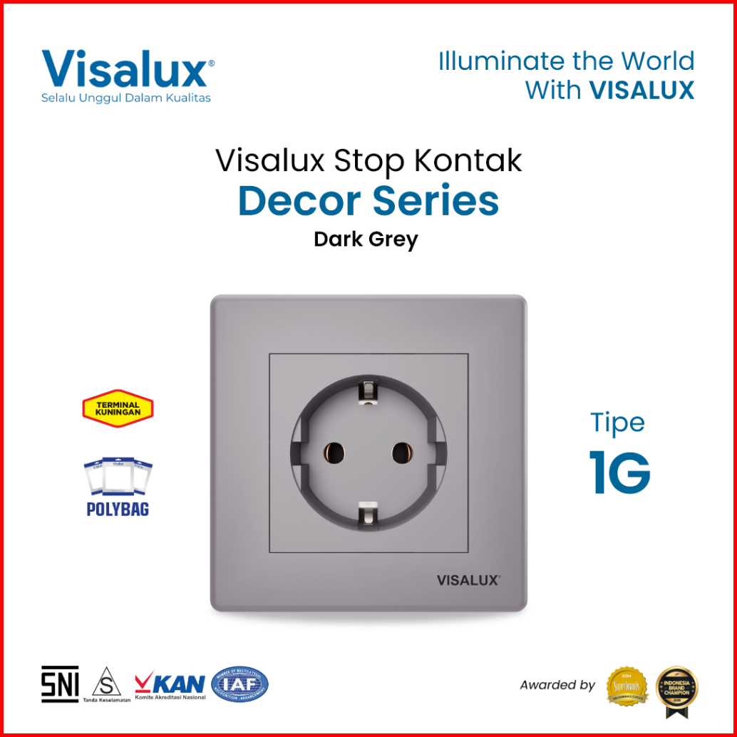 Visalux Stop Kontak Decor Series 16a - 1g Dark Grey Stop Kontak Premium Vsd1016-dg