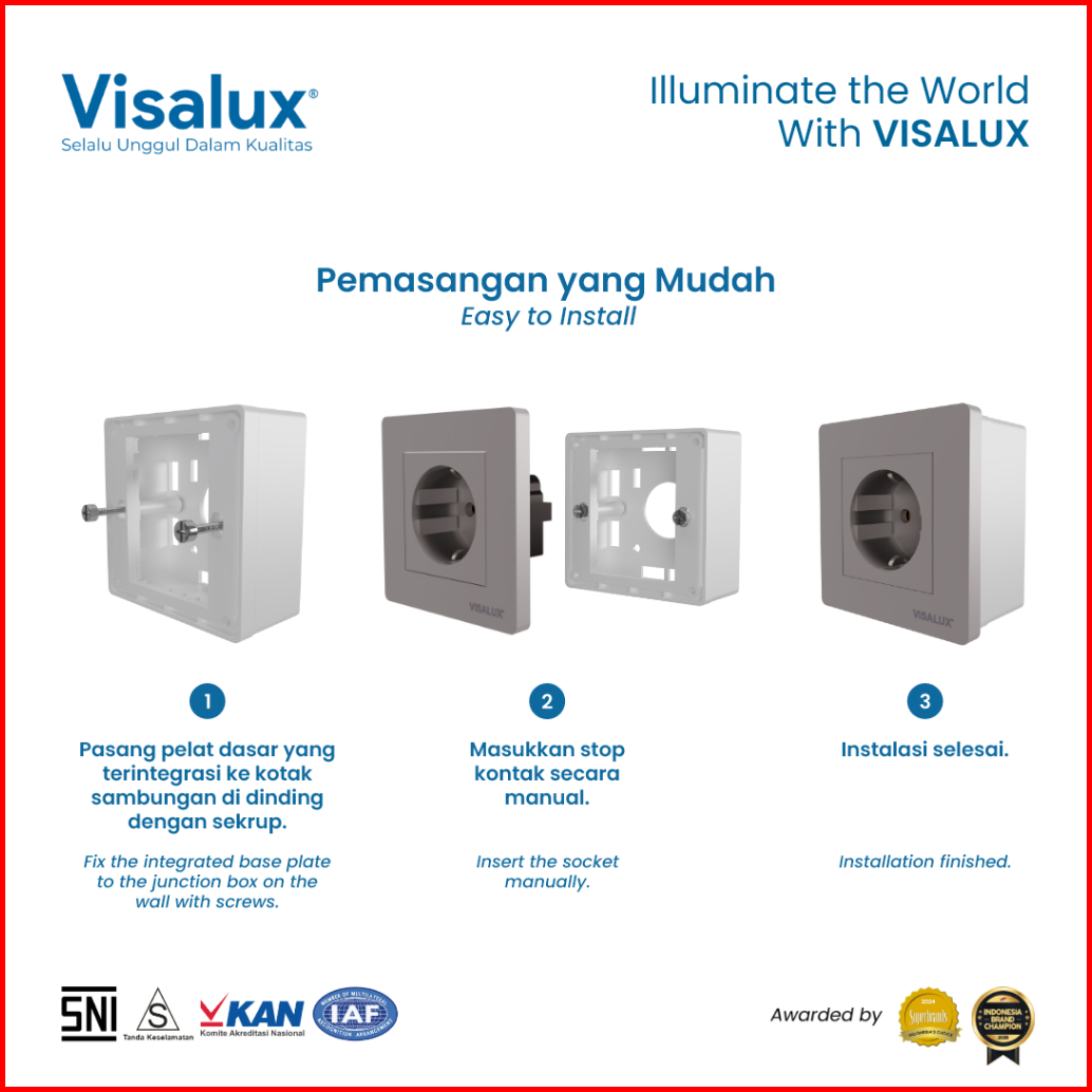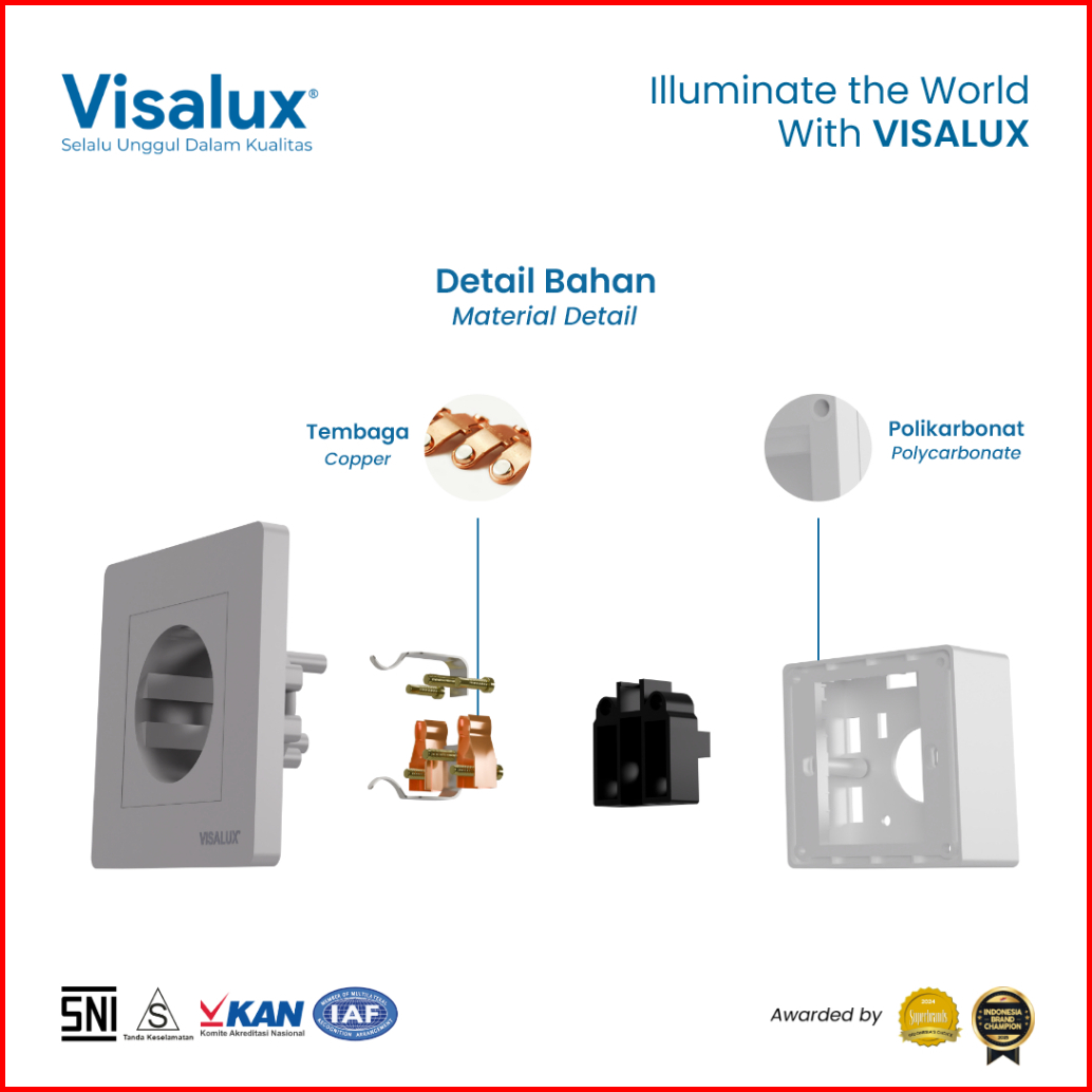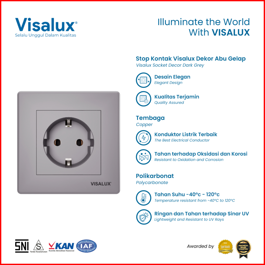 Visalux Stop Kontak Decor Series 16a - 1g Dark Grey Stop Kontak Premium Vsd1016-dg
