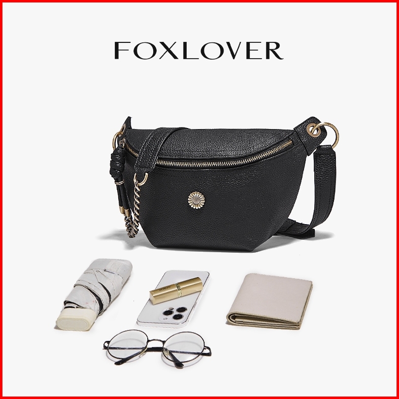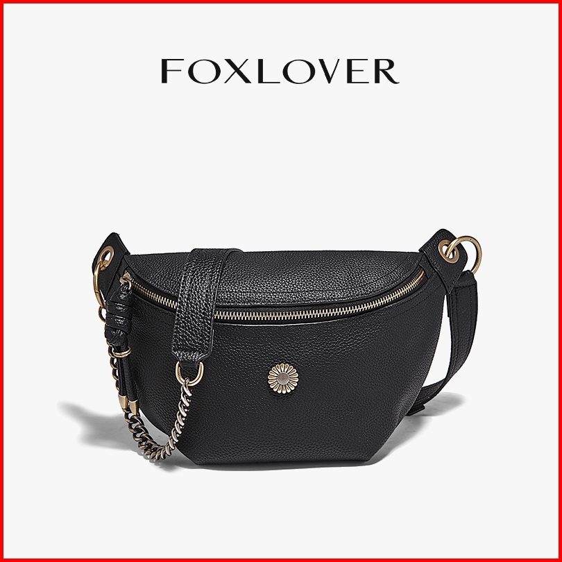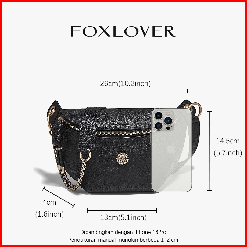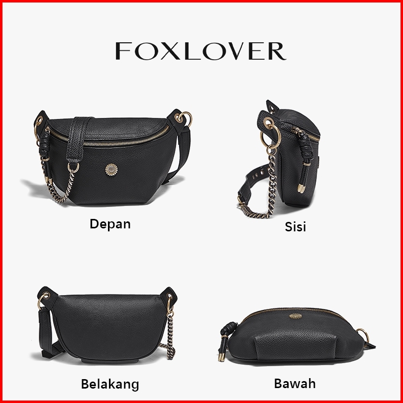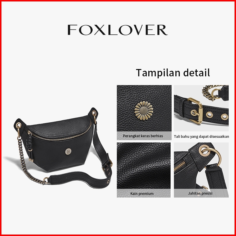 Foxlover Tas Selempang Wanita Tas Rantai Indah Tali Bahu Yang Dapat Disesuaikan Hitam Putih