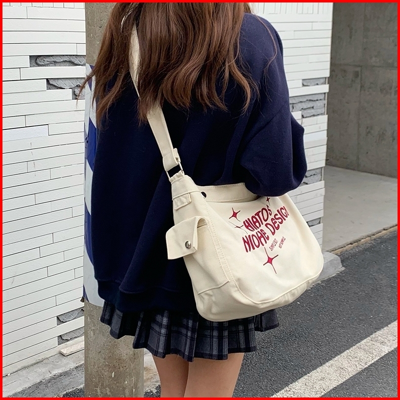 Ymeet Ready Import Tas Slempang Fashion Tas Wanita Selempang Bahan Kanvas Tas Wanita Selempang Lebar Elizabeth Sling Bag