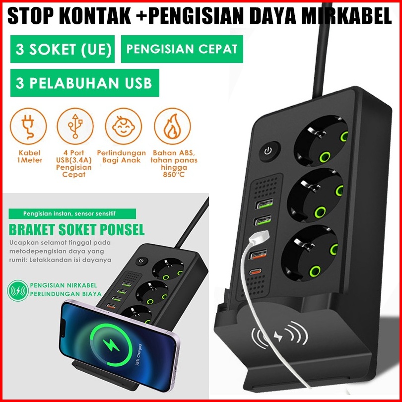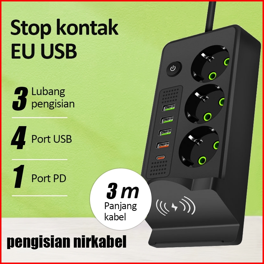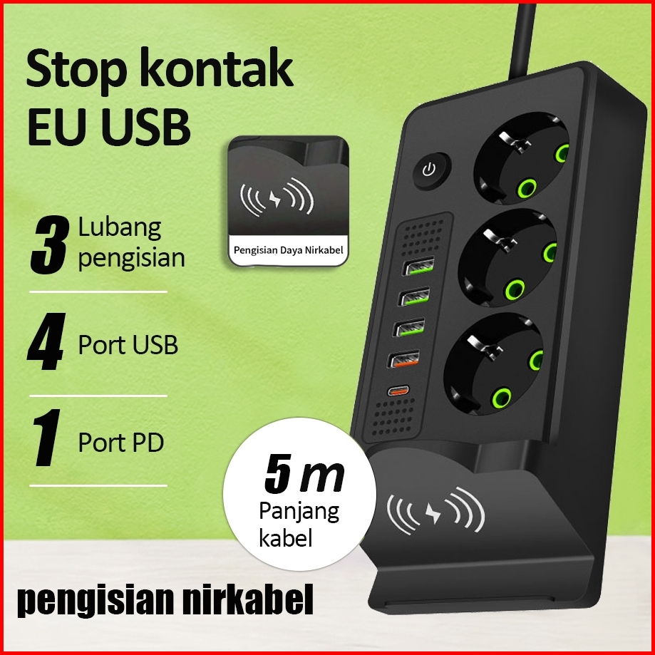 2500w Power Strip Socket Charger Stop Kontak Usb Charger Elektrik Type C Pengisian Daya Nirkabel 2 Meter Original Power
