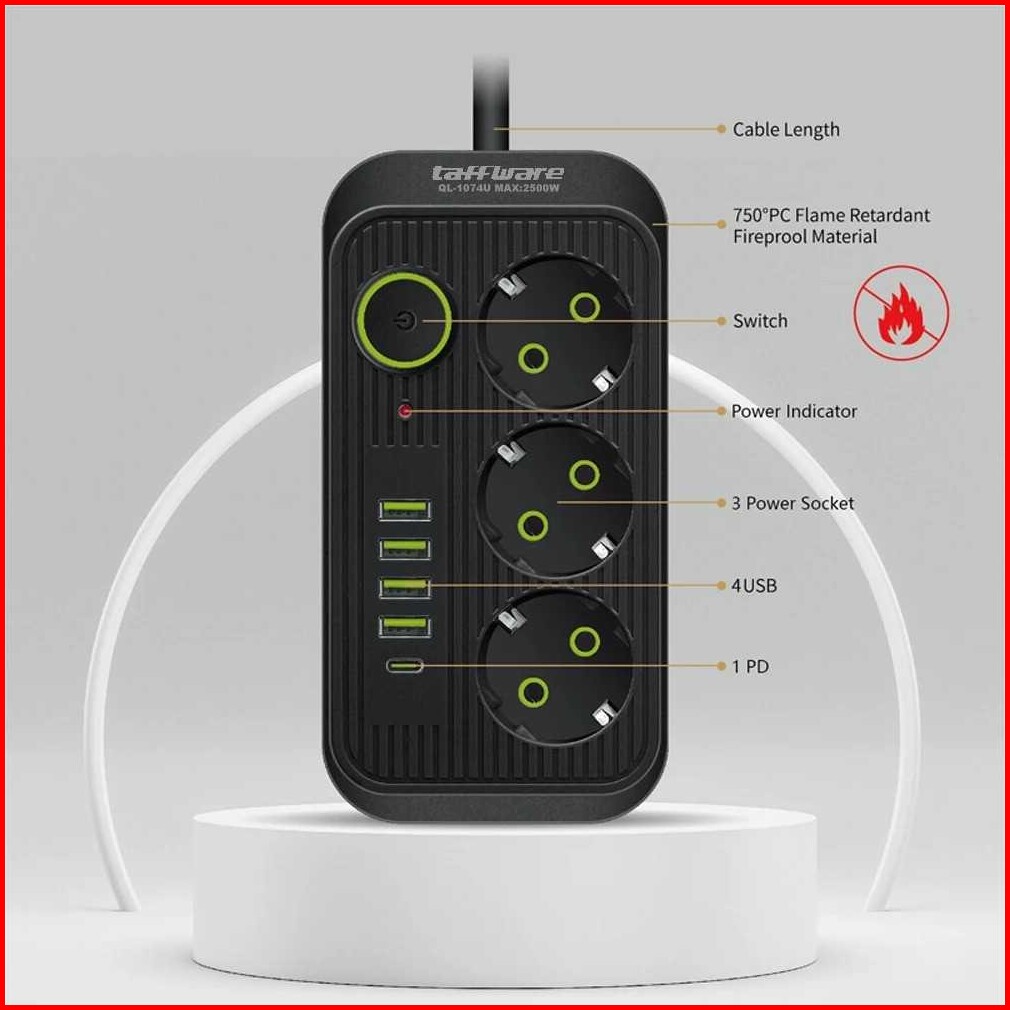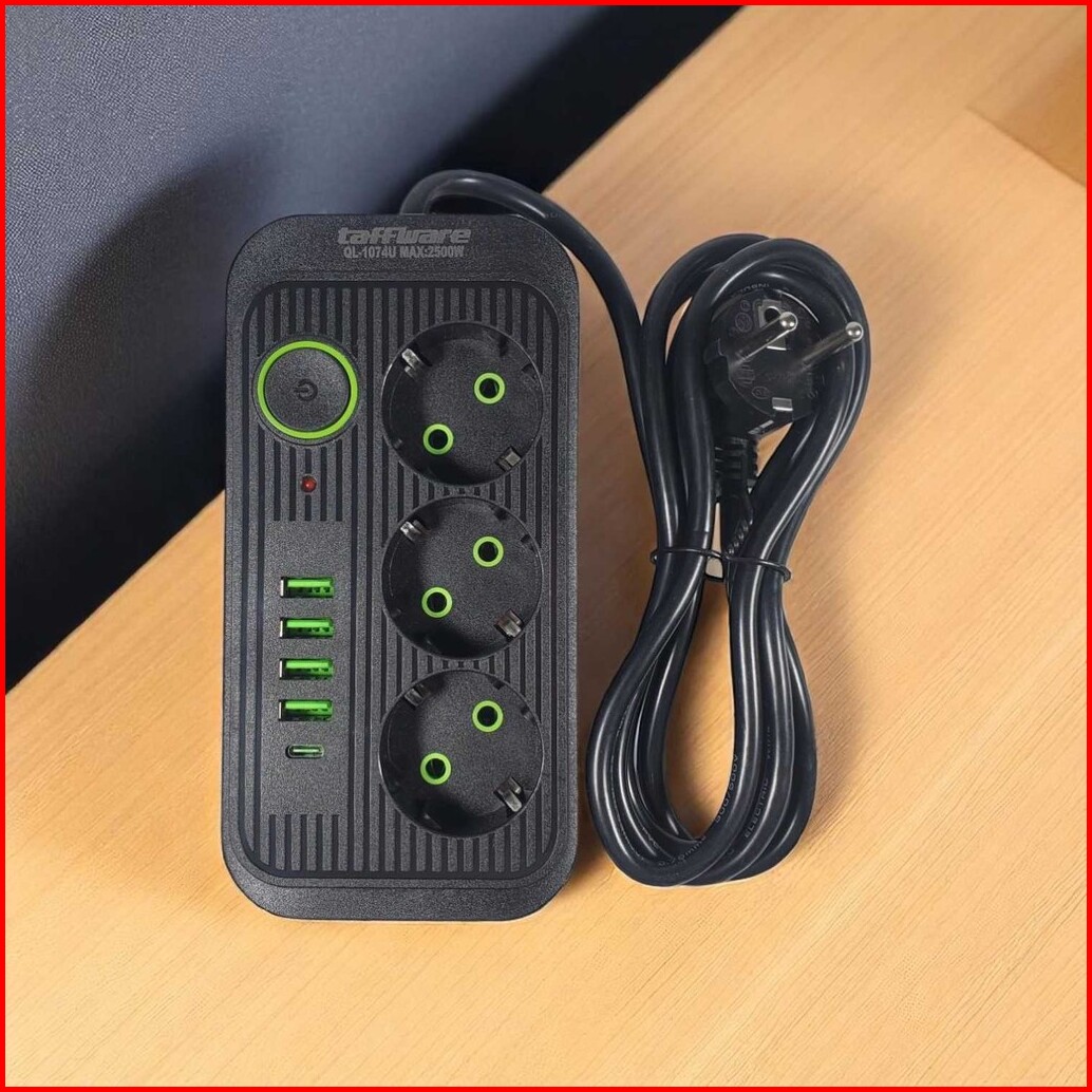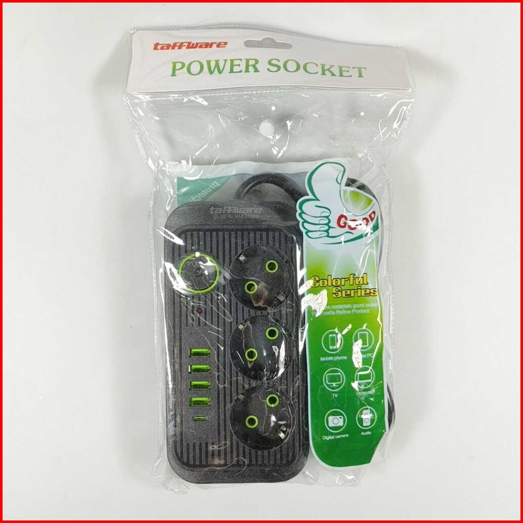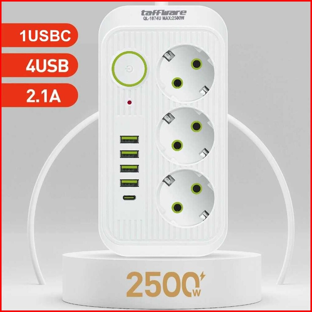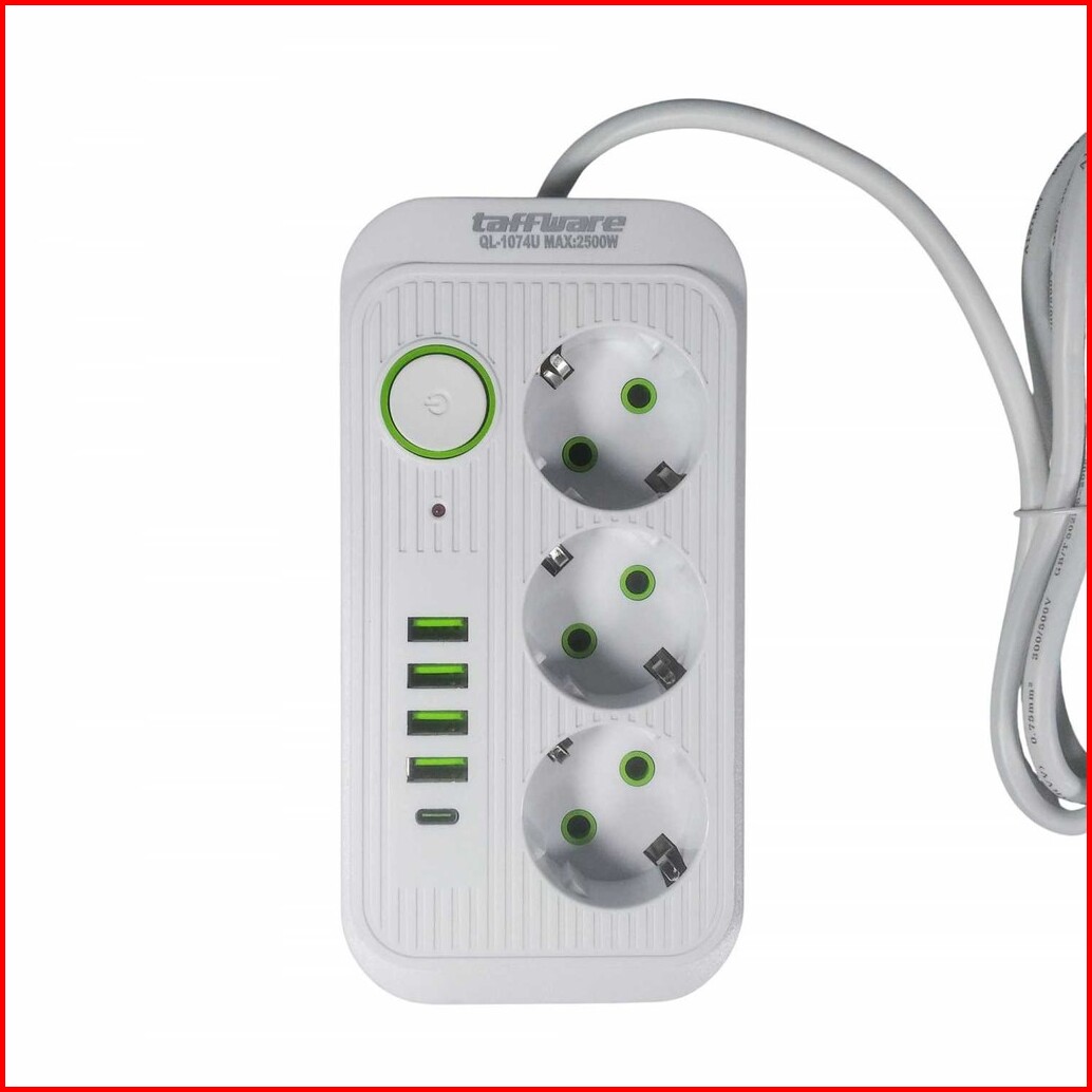 Taffware Stop Kontak 3 Plug 4 Usb 1 Usb Type C 10a 250v 2500w 2.1a - Ql-1074u