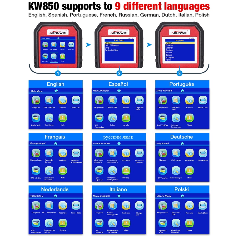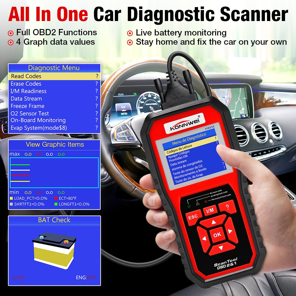 KONNWEI KW850 Mobil OBD2 Scanner Profesional Mobil Diagnostik Scanner Alat OBD 2 Periksa Mesin Periksa Otomotif Pembaca