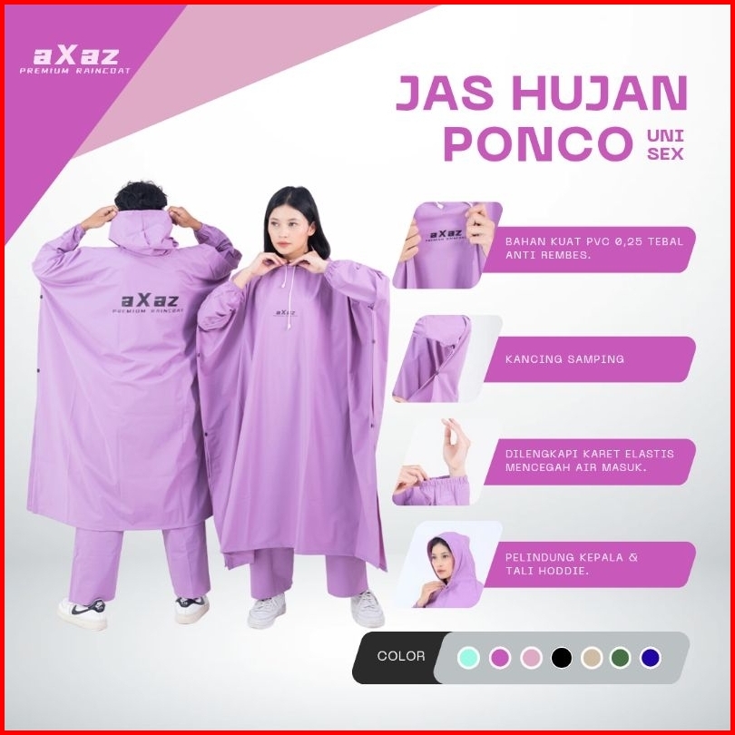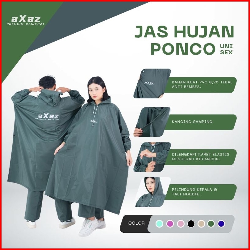 Axaz Jas Hujan Ponco Dan Stelan Ponco Celana Mantel Hujan Kelelawar Bahan Pvc Tebal Elastis Raincoat Termurah