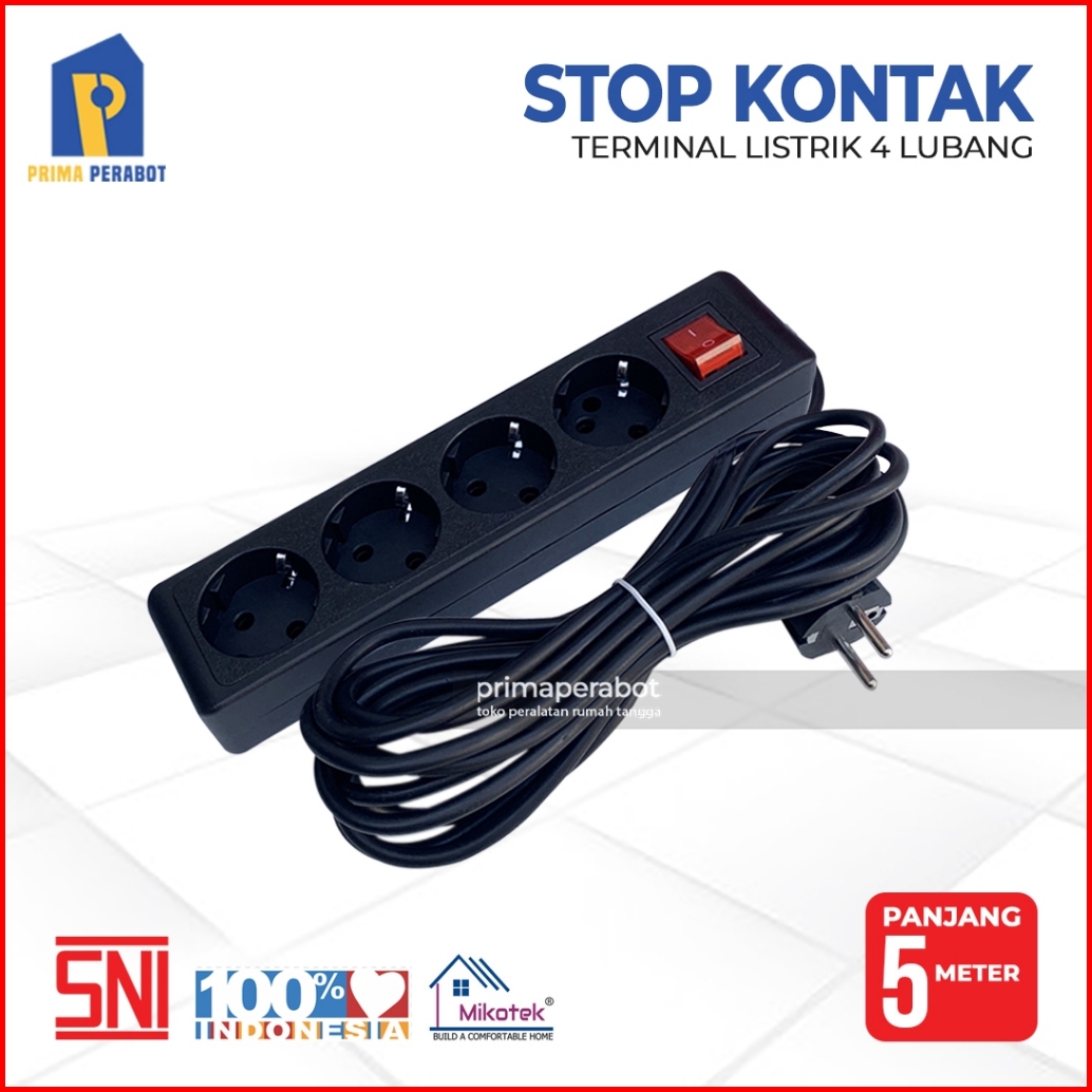 Stop Kontak Listrik Terminal Listrik Arde Hitam 4 Lubang 5 Meter Mikotek