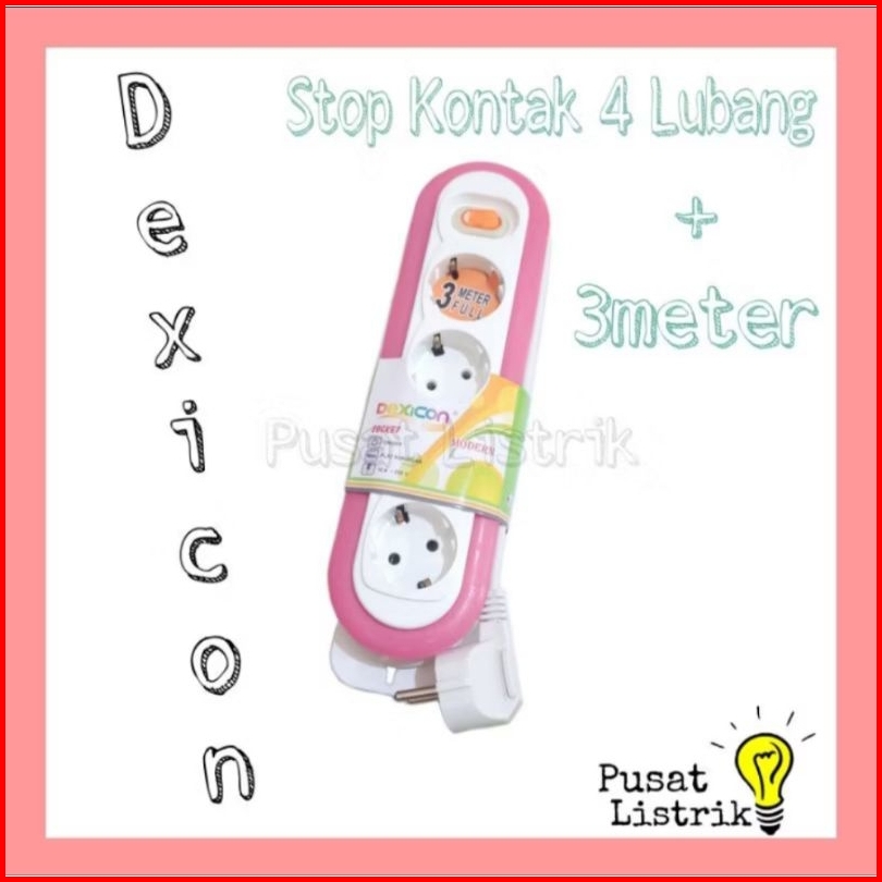 Stop Kontak 4 Lubang Kabel 3meter 5meter Dexicon Switch On Off Khusus Warna Pink Merah Muda