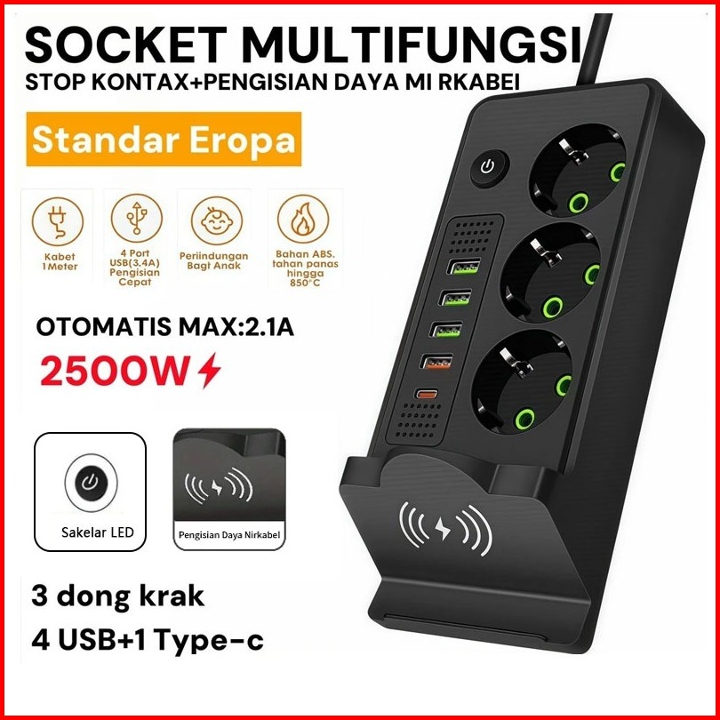 3000w Power Strip Power Socket Charger Stop Kontak Usb Charger 2 Meter