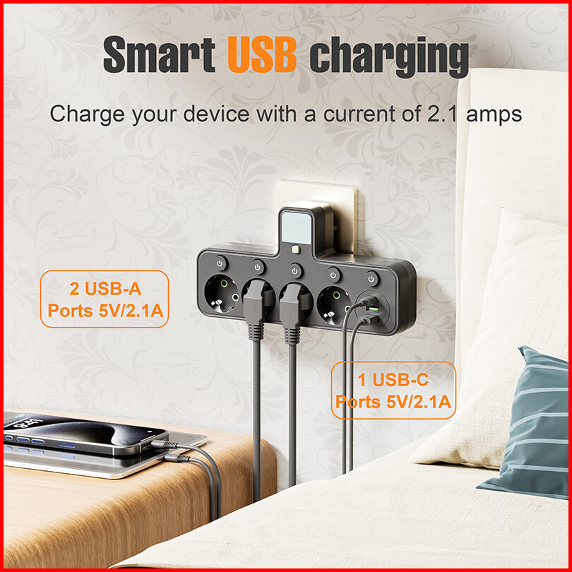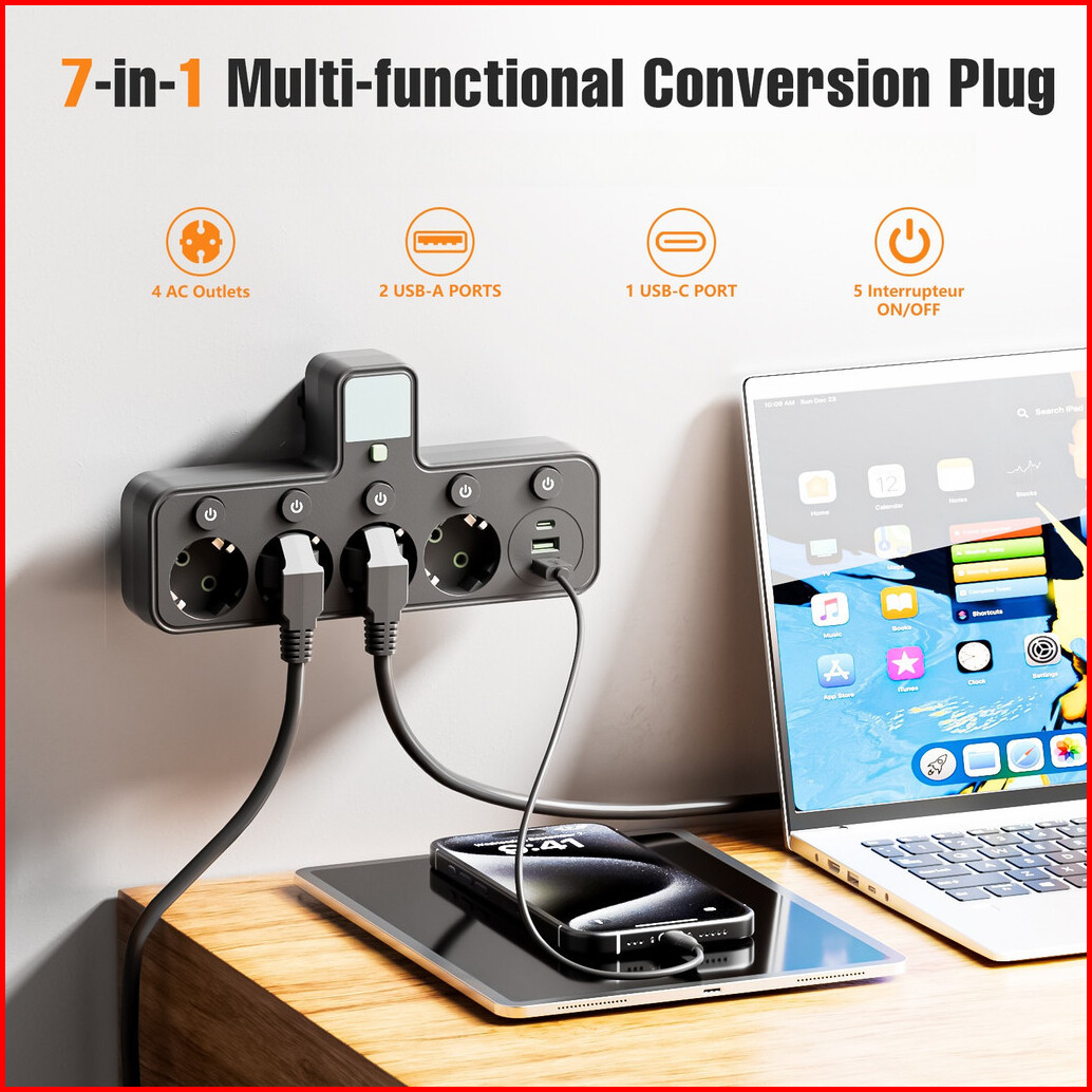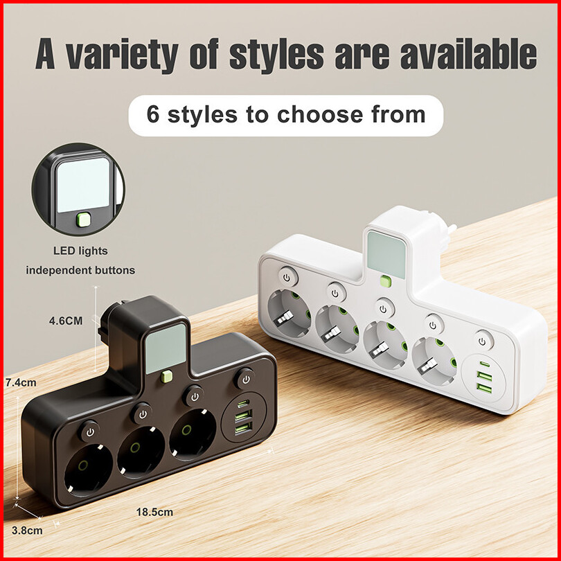 Stop Kontak Multi 4 Lubang 2 Usb 1 Type-c - Power Strip Expander Dengan Eu Plug Anti Surge Untuk Home Office