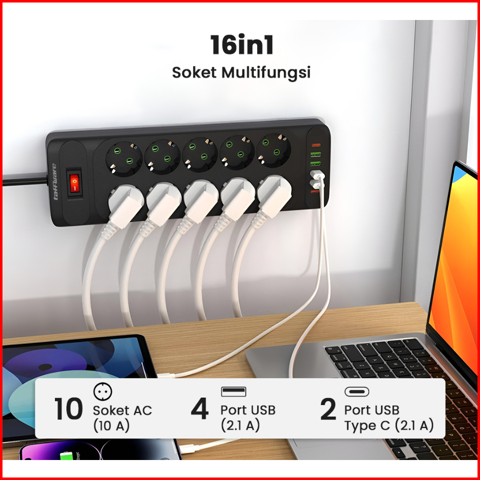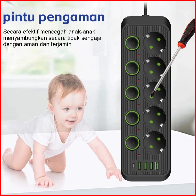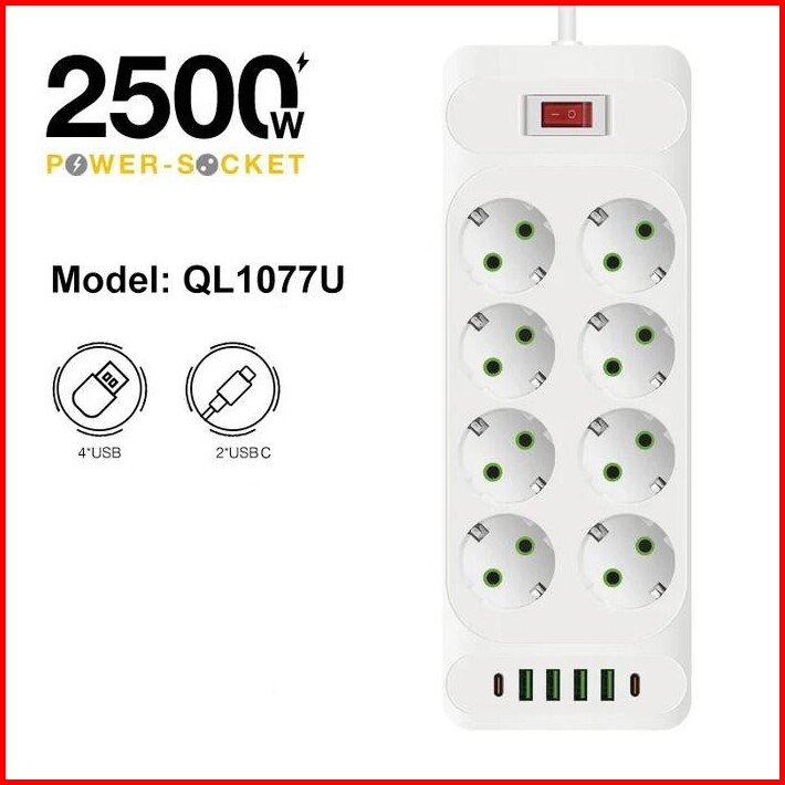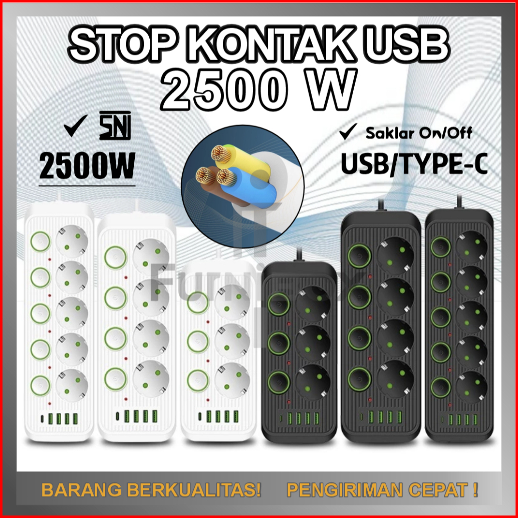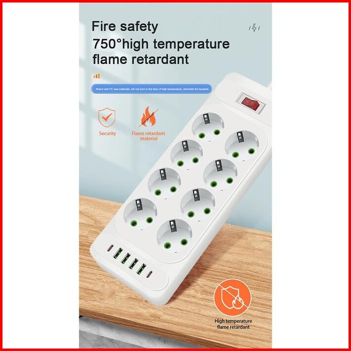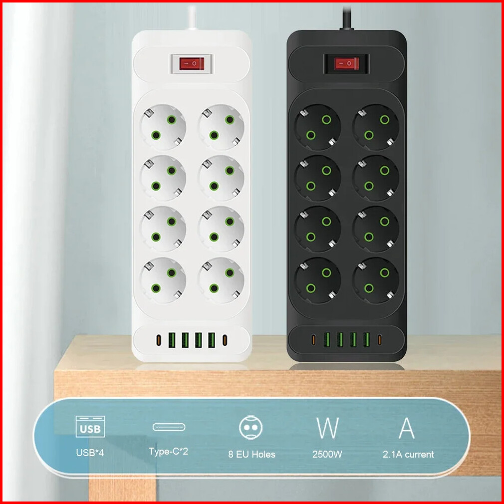 Power Port 2500w Power Strip Power Socket Charger Stop Kontak 8-10 Lubang Usb Charger 2meter