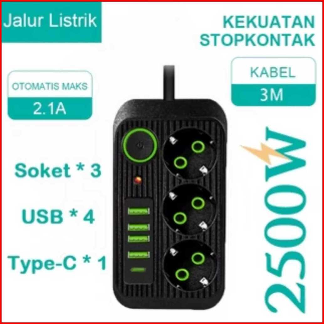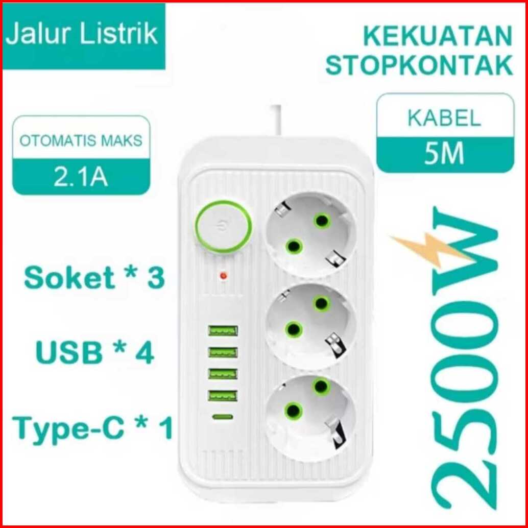 Stop Kontak Power Socket Usb Charger 2500w Kabel Terminal Listrik Serbaguna Multifungsi Panjang Kabel 3 Meter Dan 5 Mete