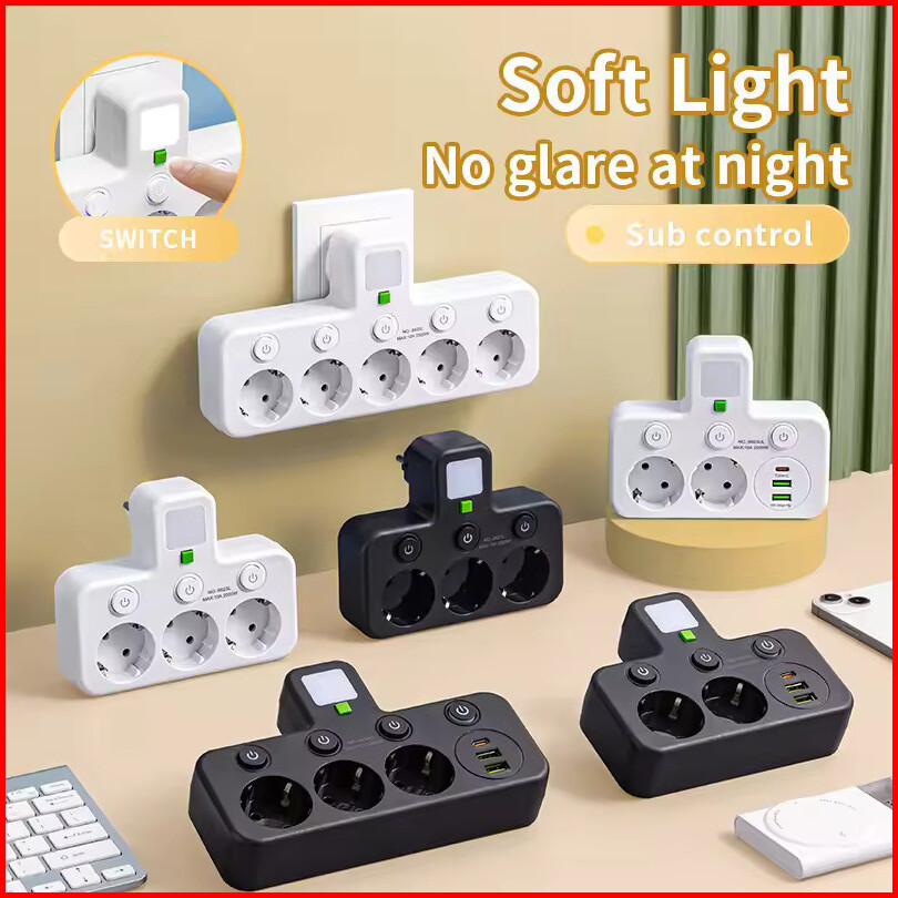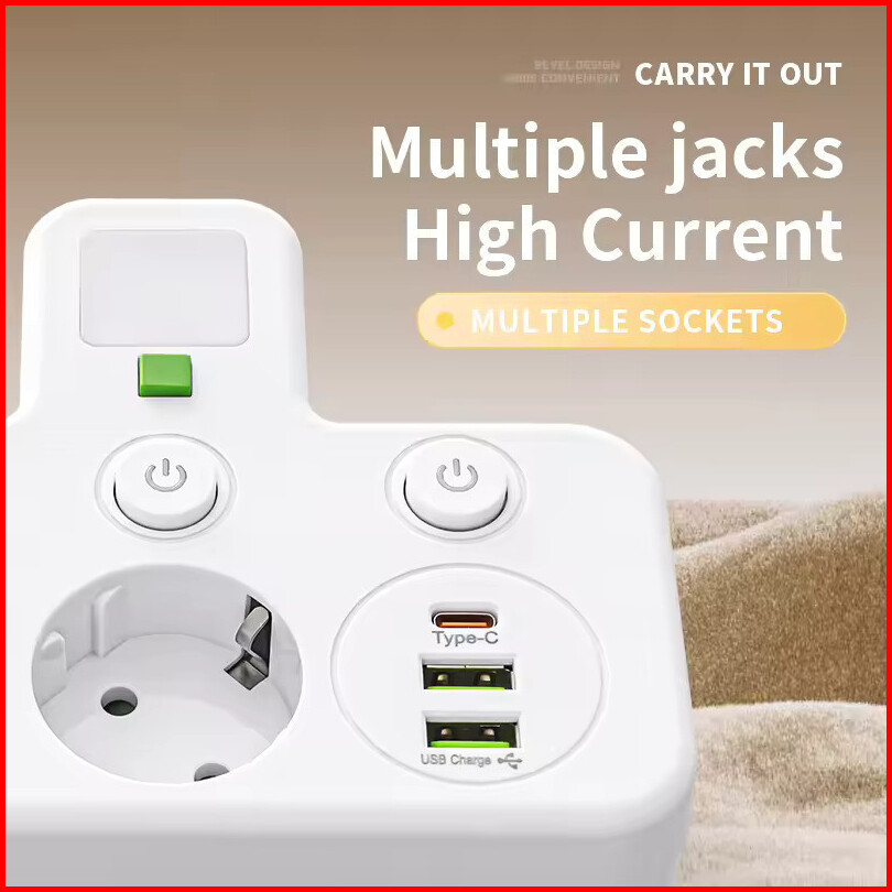 Strip Multi Outlets Stopkontak Led Light Type C Usb Daya Dengan Steker Eu Plug Power Port