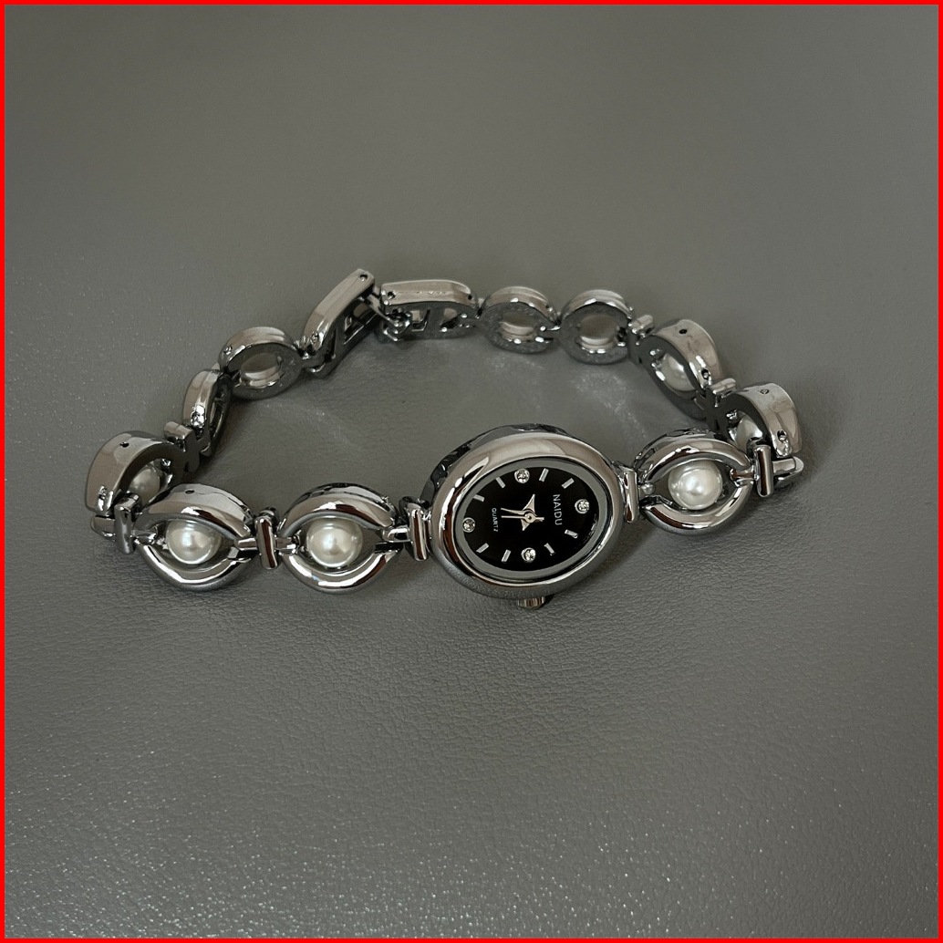 Jam Tangan Wanita Quartz Retro Mewah Model Gelang Mutiara Baru -