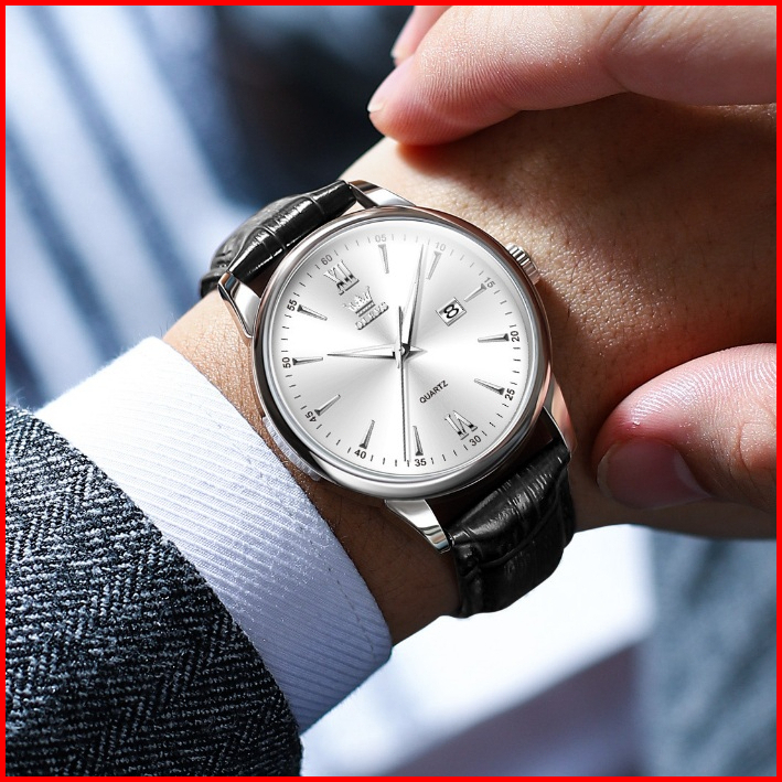 Olevs Jam Tangan Pria Original Anti Air Cowok Kulit Kalender Analog Arloji Bisnis Fashion Men Watch Ready Stock Mode 500